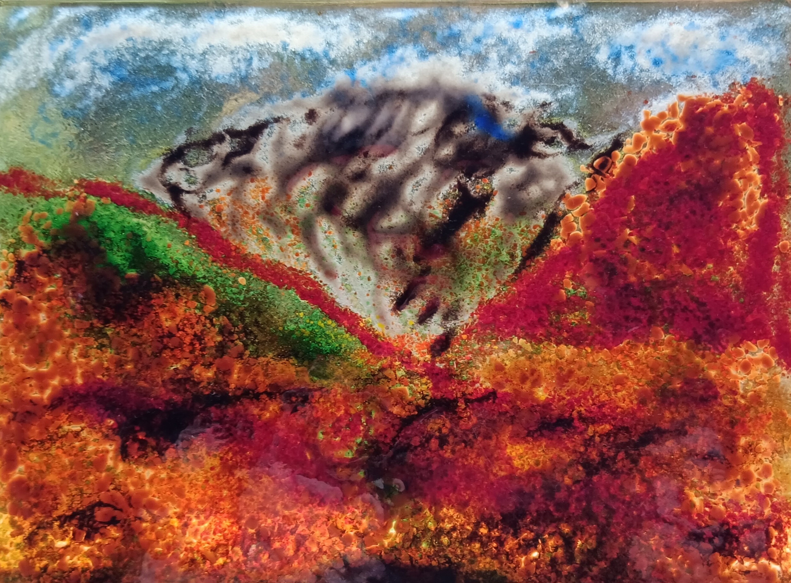 Moss - bergen in de zomer. Een mengeling van mos, heide en regen in Wales. Maar hier is het, glasfusie door Ed.