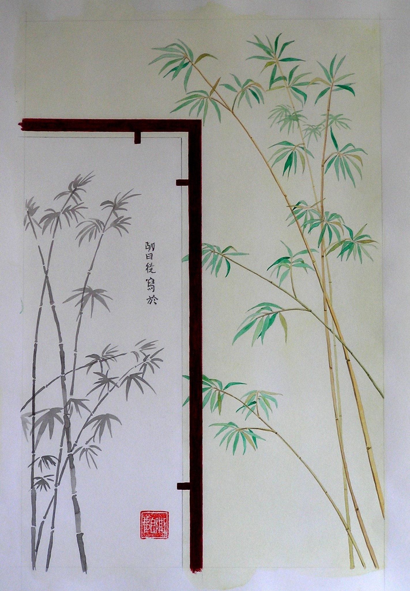 Bamboe als inspiratie. Tekenen en schilderen is mijn hobby. Bamboe is eem motief voor de meeste van mijn schilderingen. Gebruikte materialen zijn potlood, olieverf, acryl, chinese inkt en soms email.