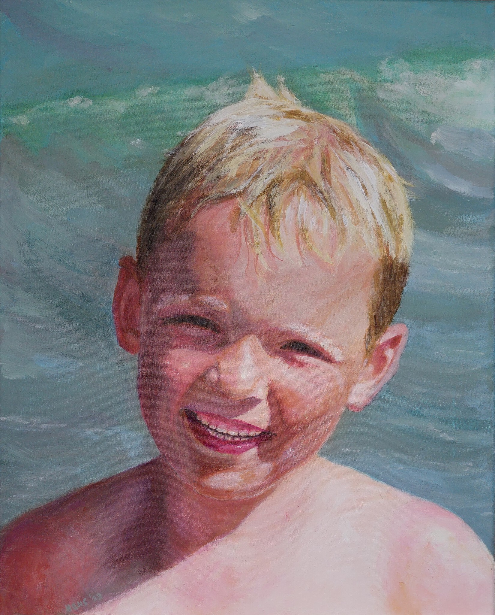 Portret kind aan zee, jongen.