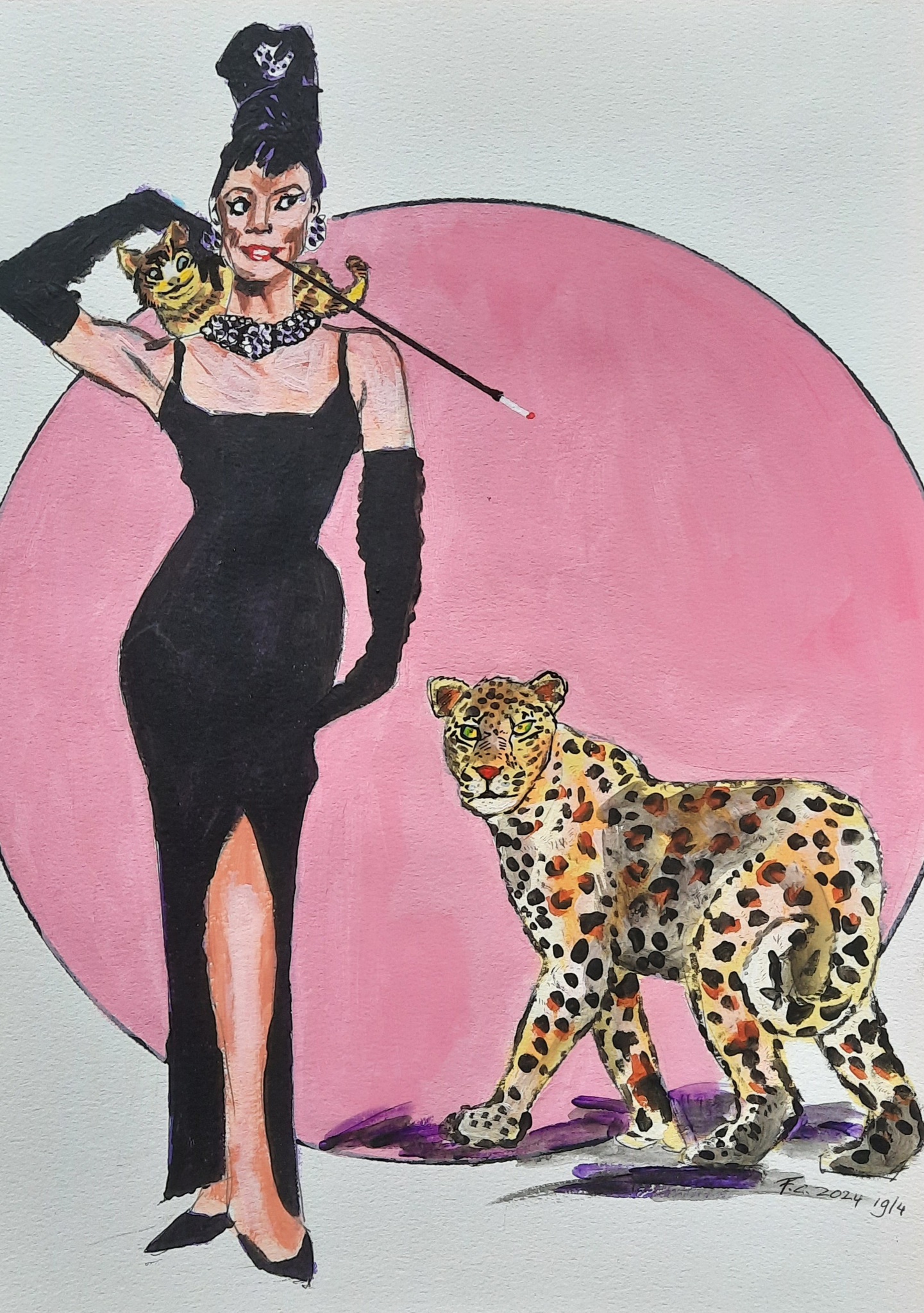 Art Ontbijt Audrey Hepburn Retro Vintage Luipaard Pulp Breakfast Pulpart Humor Komisch