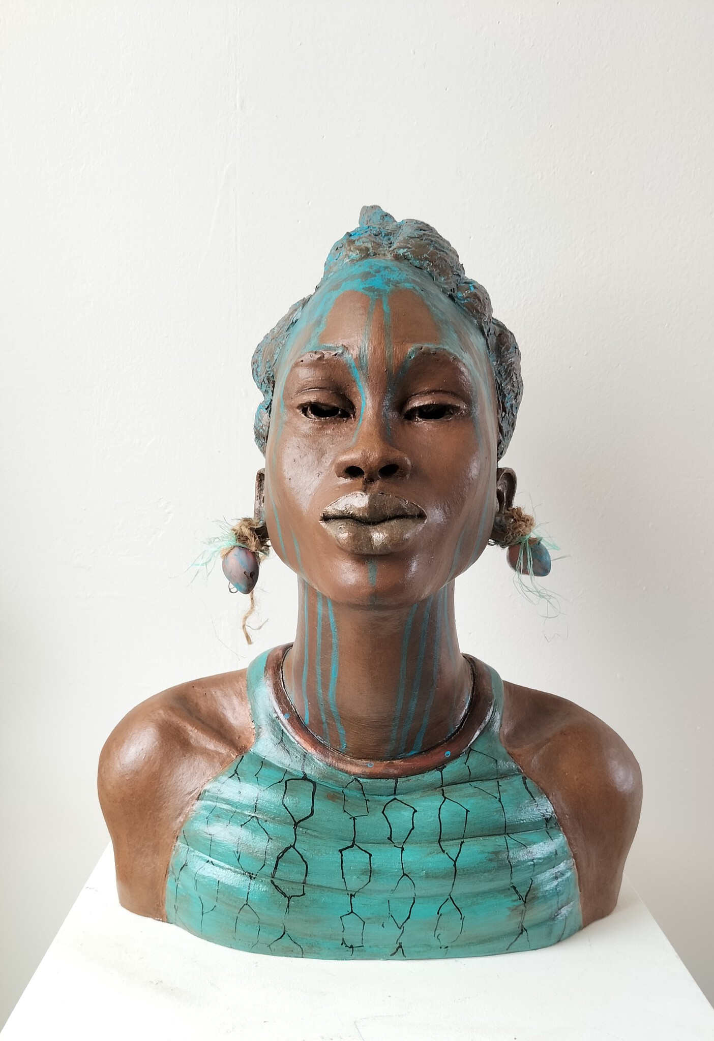 Blauw Vrouw Portret Afrika Sculptuur