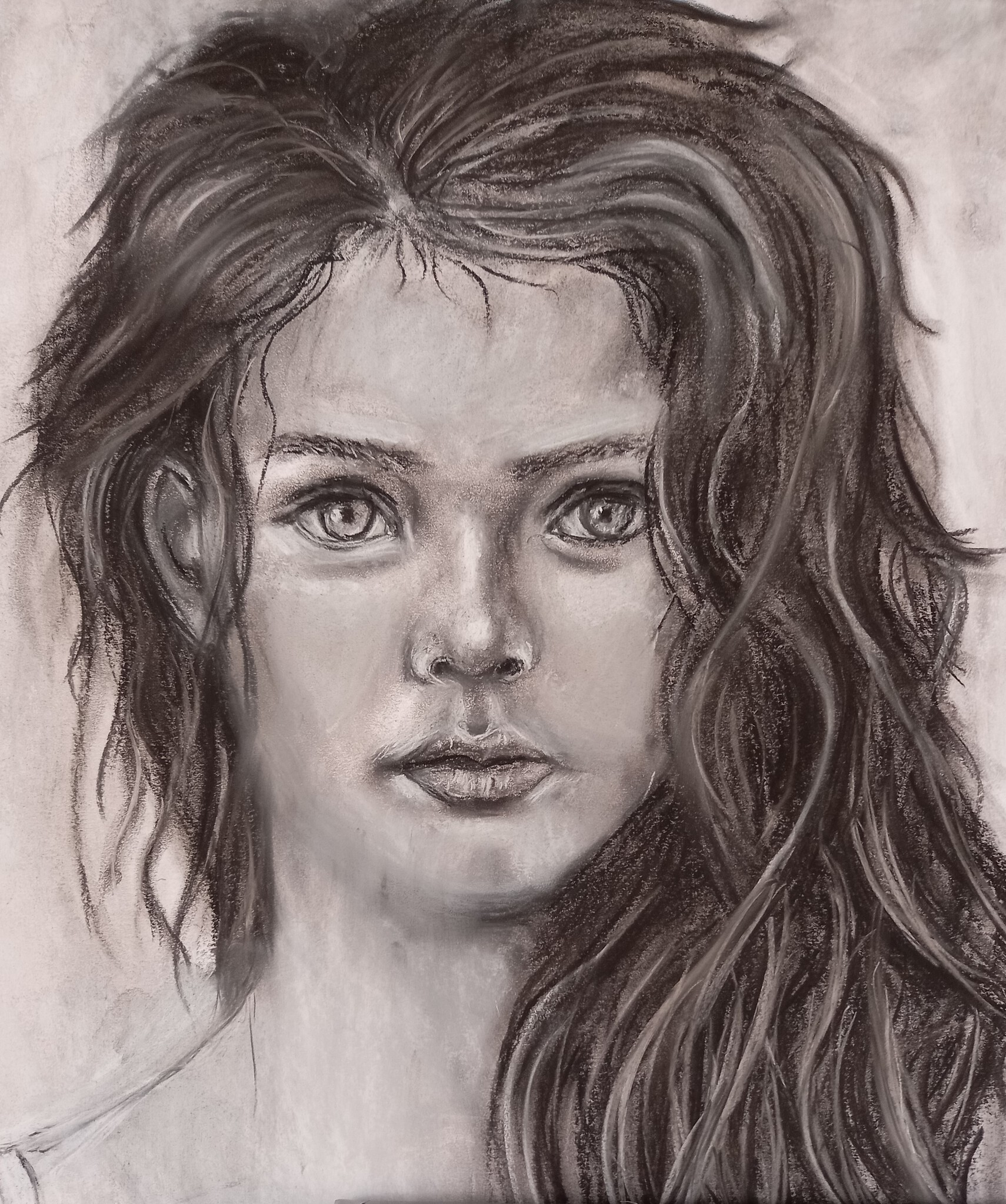 Potlood Houtskool Getekend Meisje