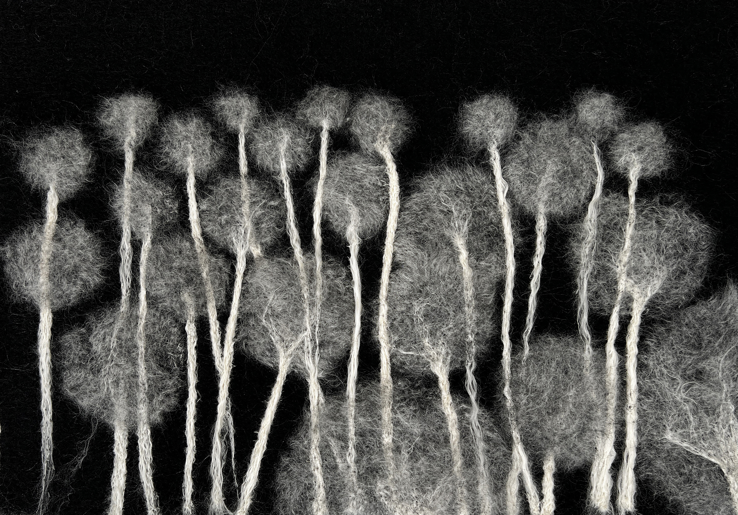 Wit Grijs Zwart Bloem Bloei Rouw Vergankelijkheid Dandelion Paardebloem Uitgebloeid Pluis Wegblazen Reisnaarbinnen Reis Leven Dood Verwerken Zacht Hard Contrast Textiel Vilt Droge Naald Wol
