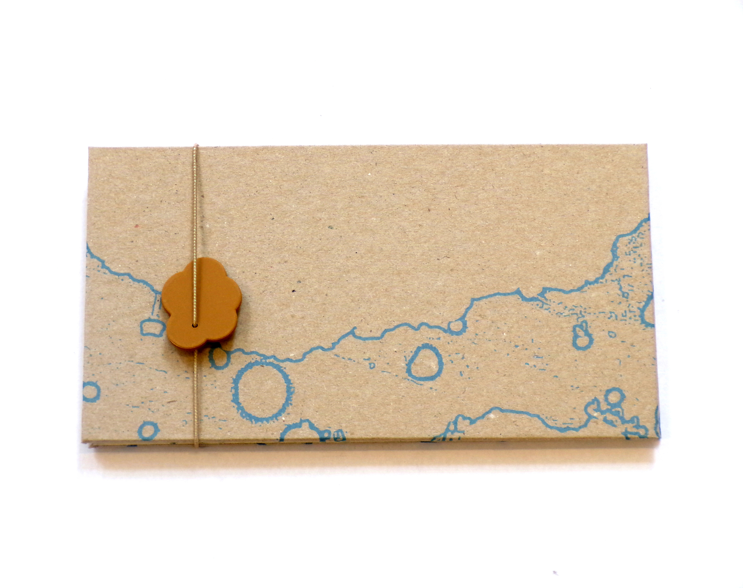 Leporello met verschillende afbeeldingen op dun Japans papier. Het boek wordt bijeengehouden met een elastiek en 3d geprinte wolk.
