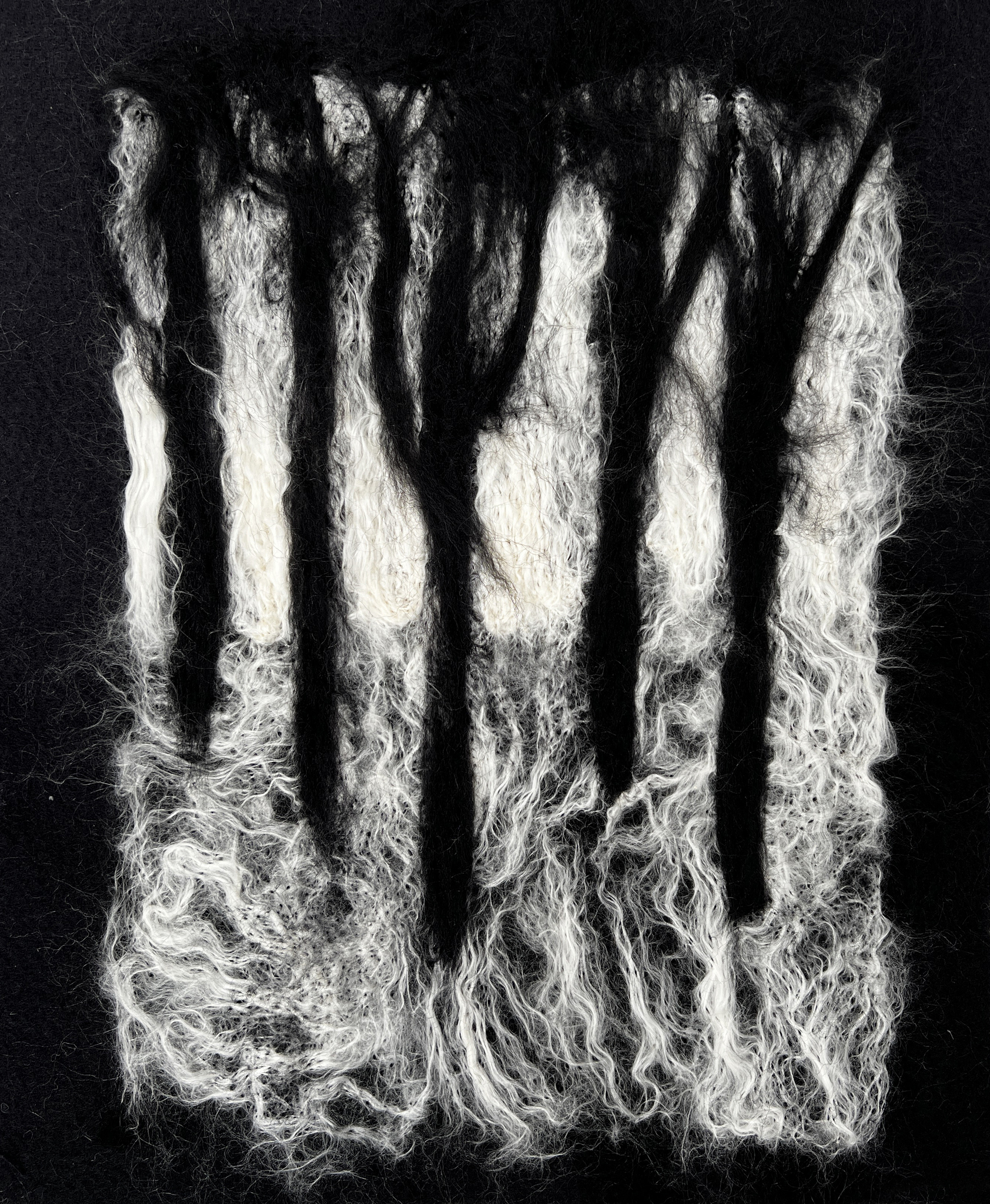 Wit Zwart Landschap Zijde Wol Schets Natuur Bomen Bos Vilt Textiel Gras Zaden Dood Rouw Leven Reis Contrast Natuurlijk Vergankelijk Vlas Onverzettelijk Wabisabi Moerbeizijde Dystopisch
