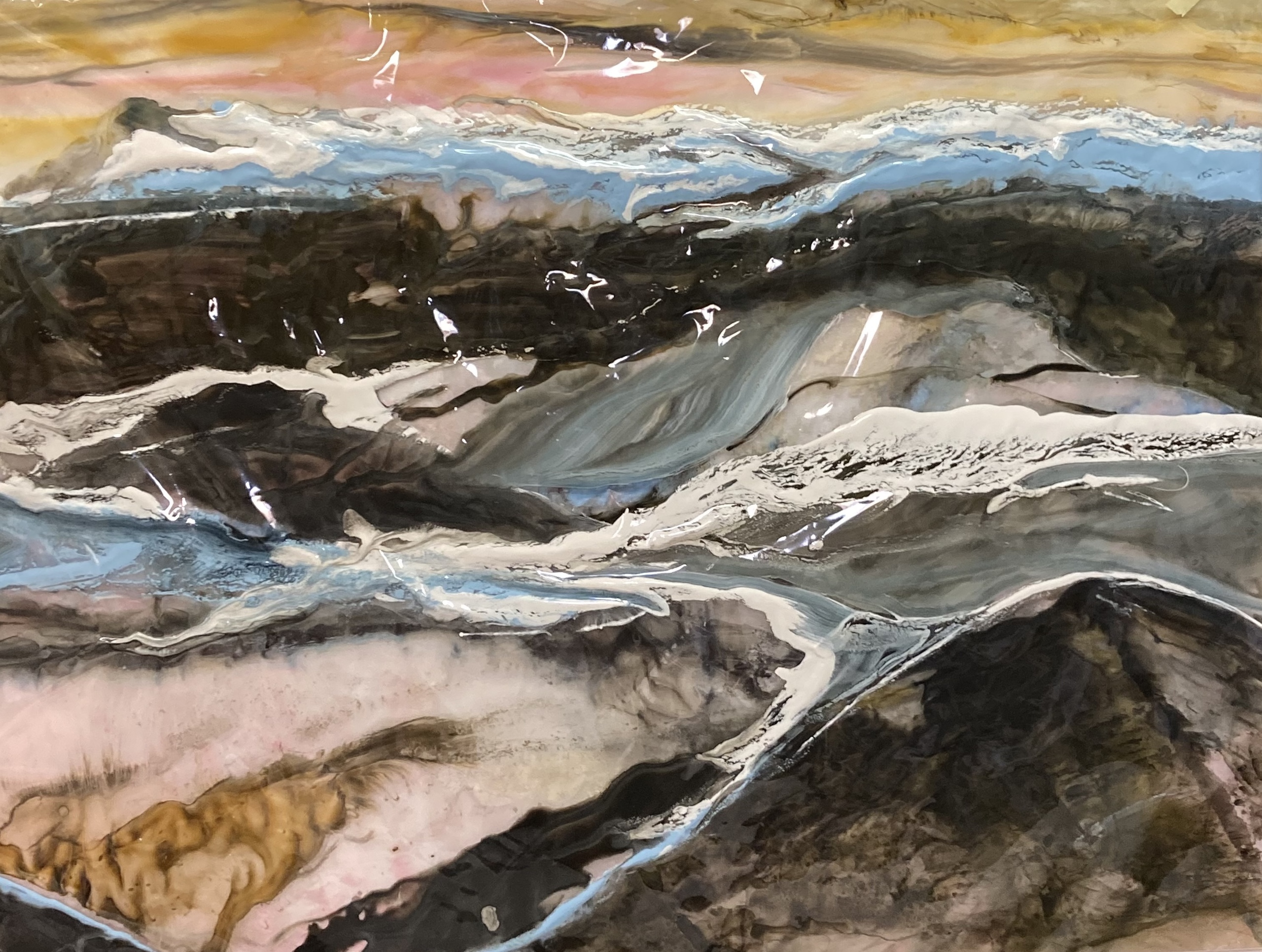 Landschap Aquarel Sneeuw Ijsland Ijs Transparant Ruig Stroomversnelling
