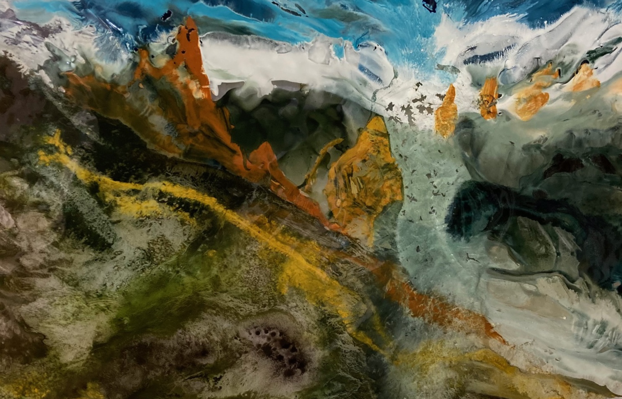 Acryl Van Aquarel Op Okergeel Transparant Cellofaan Roestrood