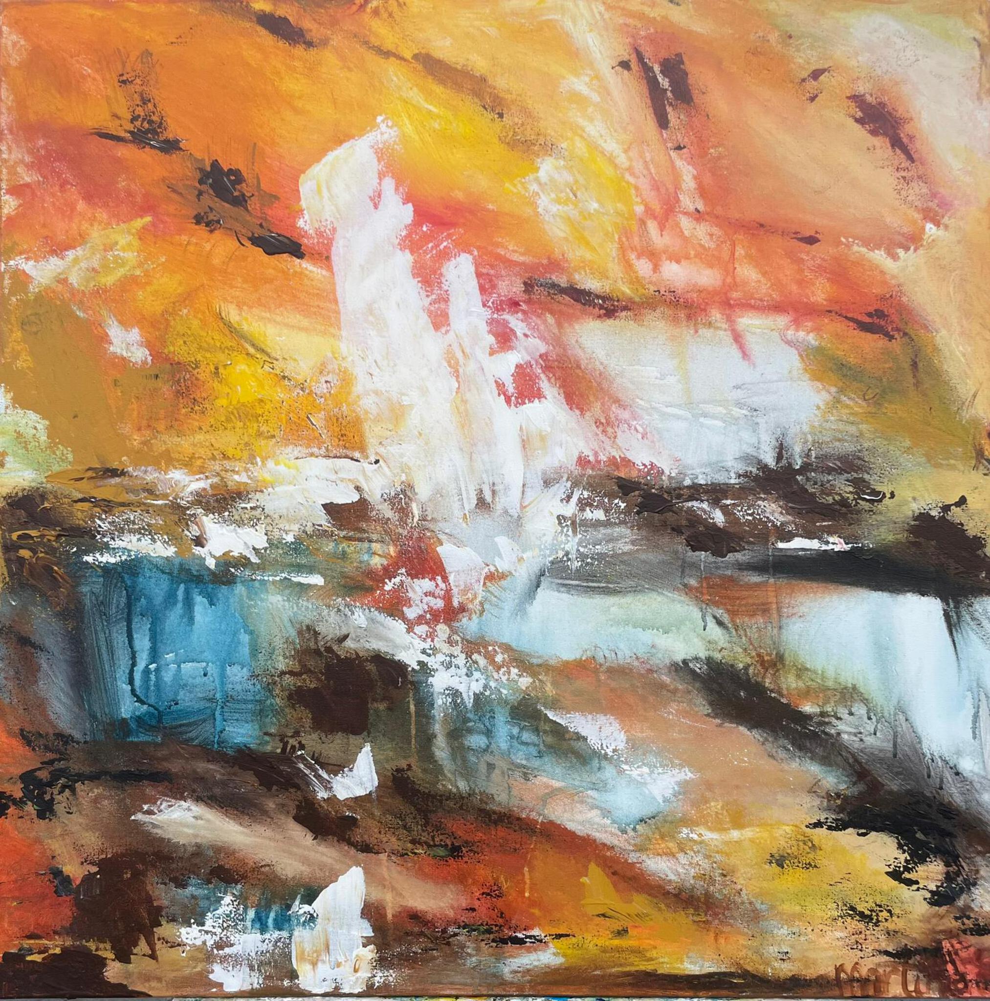 Schilderij Abstract Acryl Kleur Lago Oranje Blauw Katoen Peinture Abstraite Acrylique Couleur Orange Bleu Coton