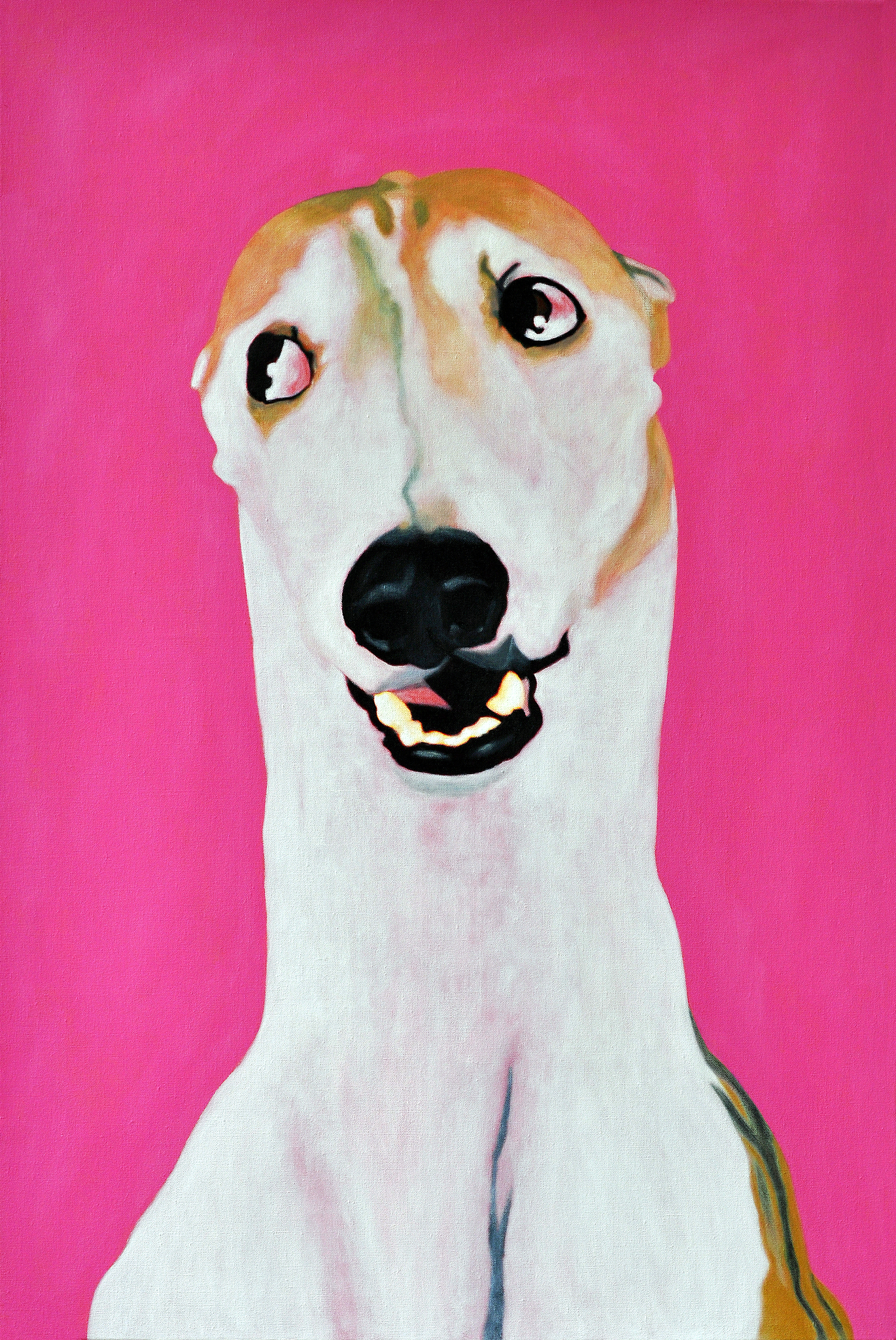 Wit Rood Geel Zwart Blauw Expressie Groot Roze Hond Surreëel Beeldspraak Staand Windhond Rechthoek Whippet Beeldtaal