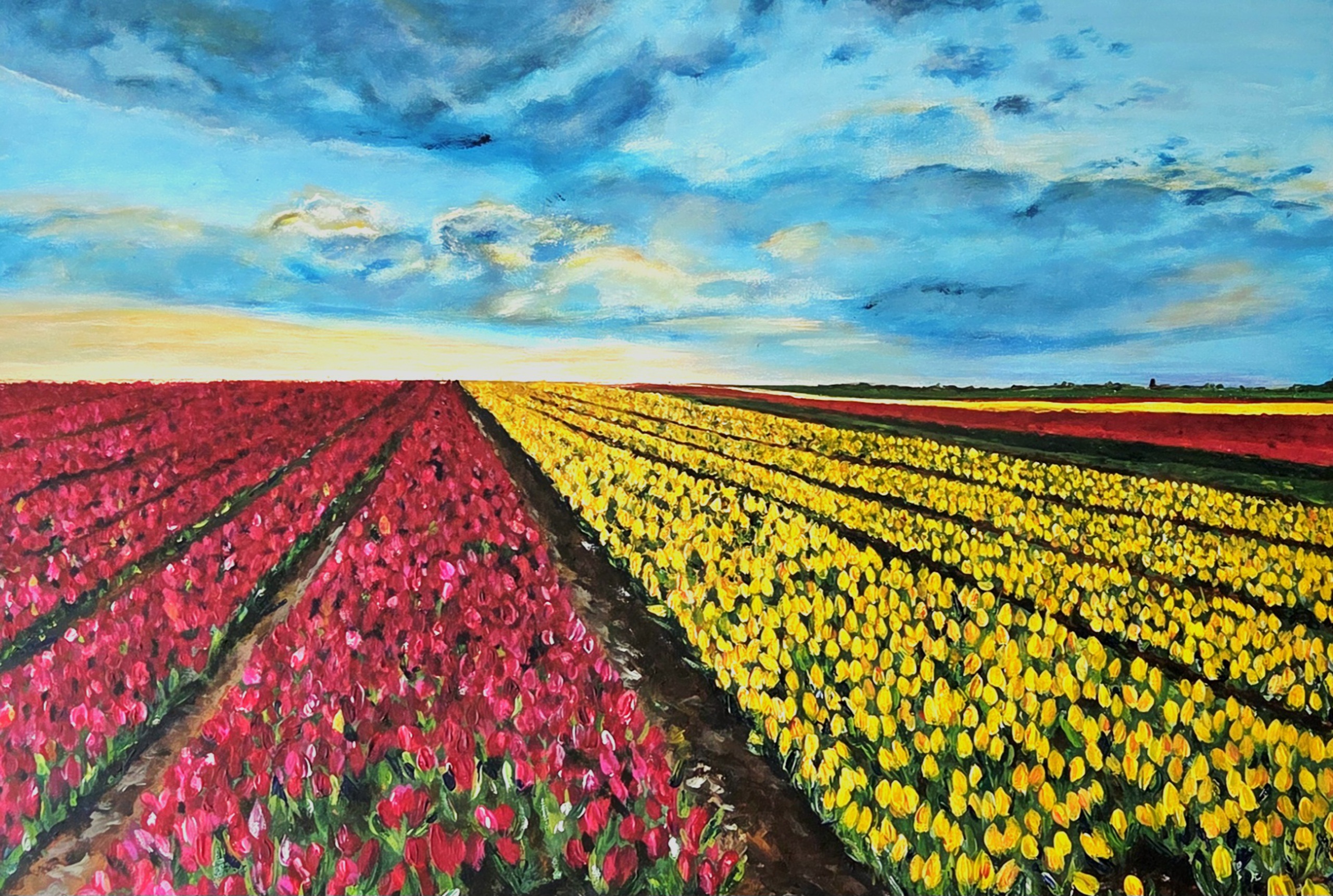 Wij wonen in een gebied waar tulpenbollen worden gekeek. Jaarlijks staan er bij ons hele tulpen velden in bloei. Het is een prachtig gezicht. Zo mooi dat ik het ook met jou wil delen.