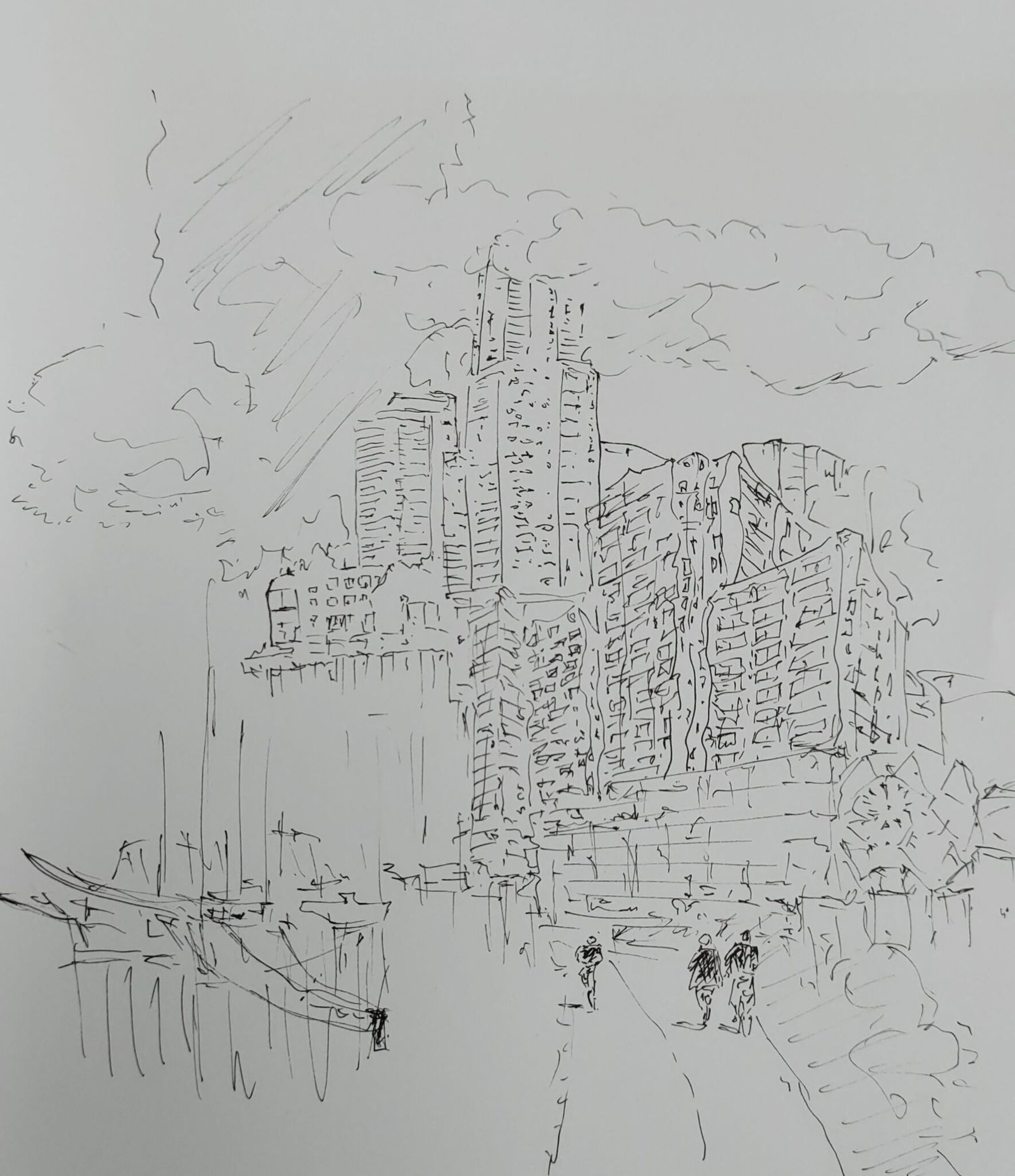 Zwart Tekening Inkt Architectuur Stad