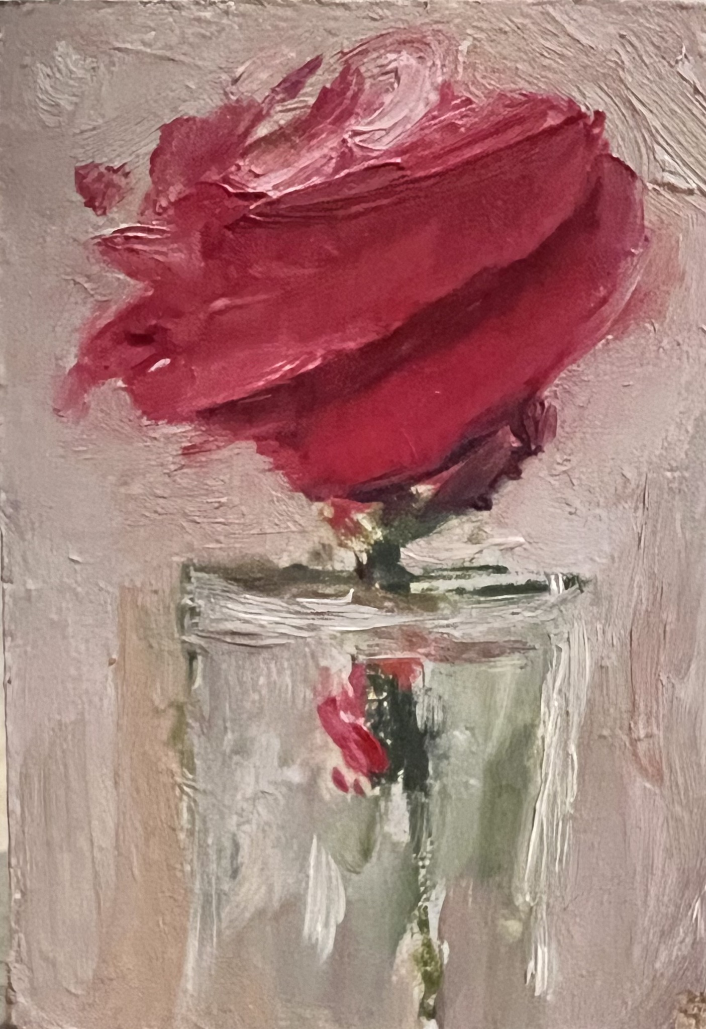 Realistisch Stilleven Roze Bloemetje Romantisch Impressionistisch Vaasje Roosje Minischilderij Petitpeintre