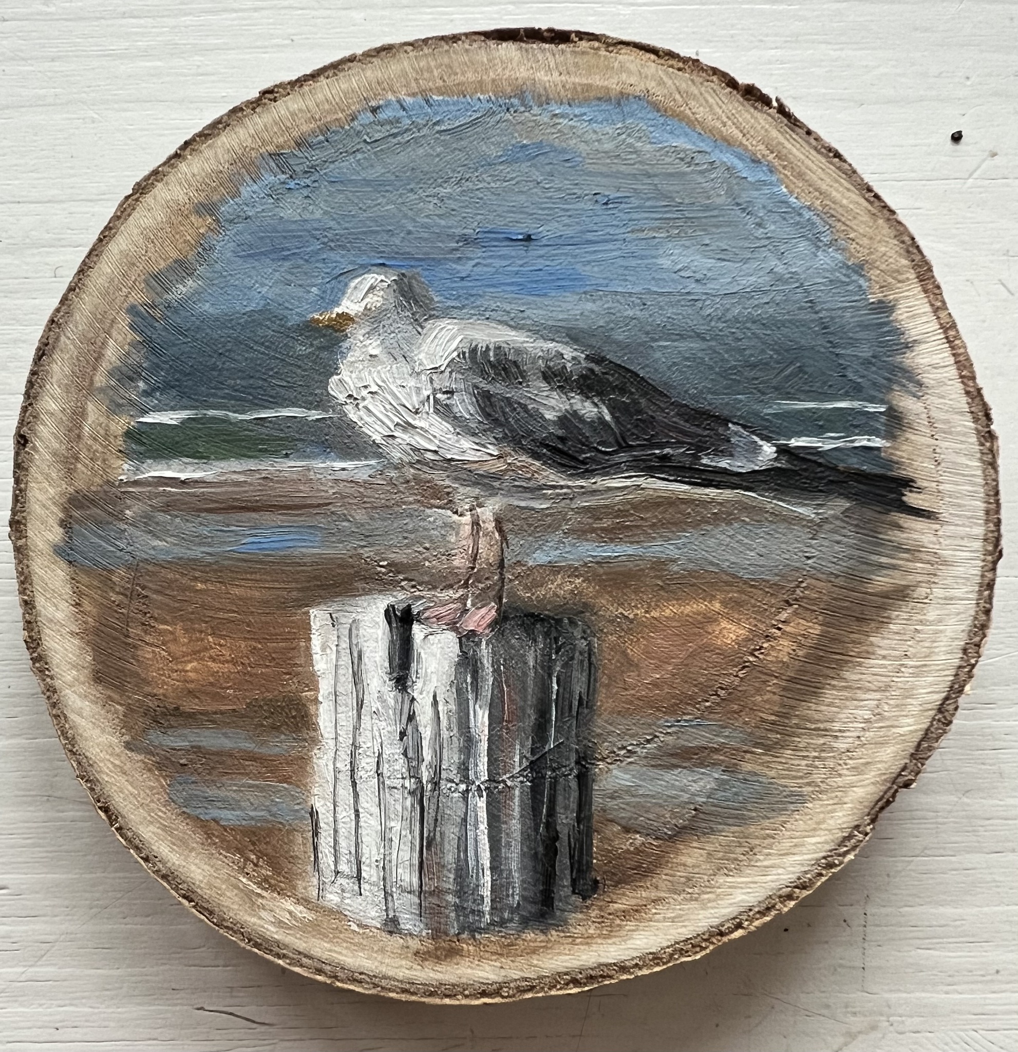 Zee Strand Realistisch Romantisch Impressionistisch Zeemeeuw Strandpaal Minischilderij Petitpeintre