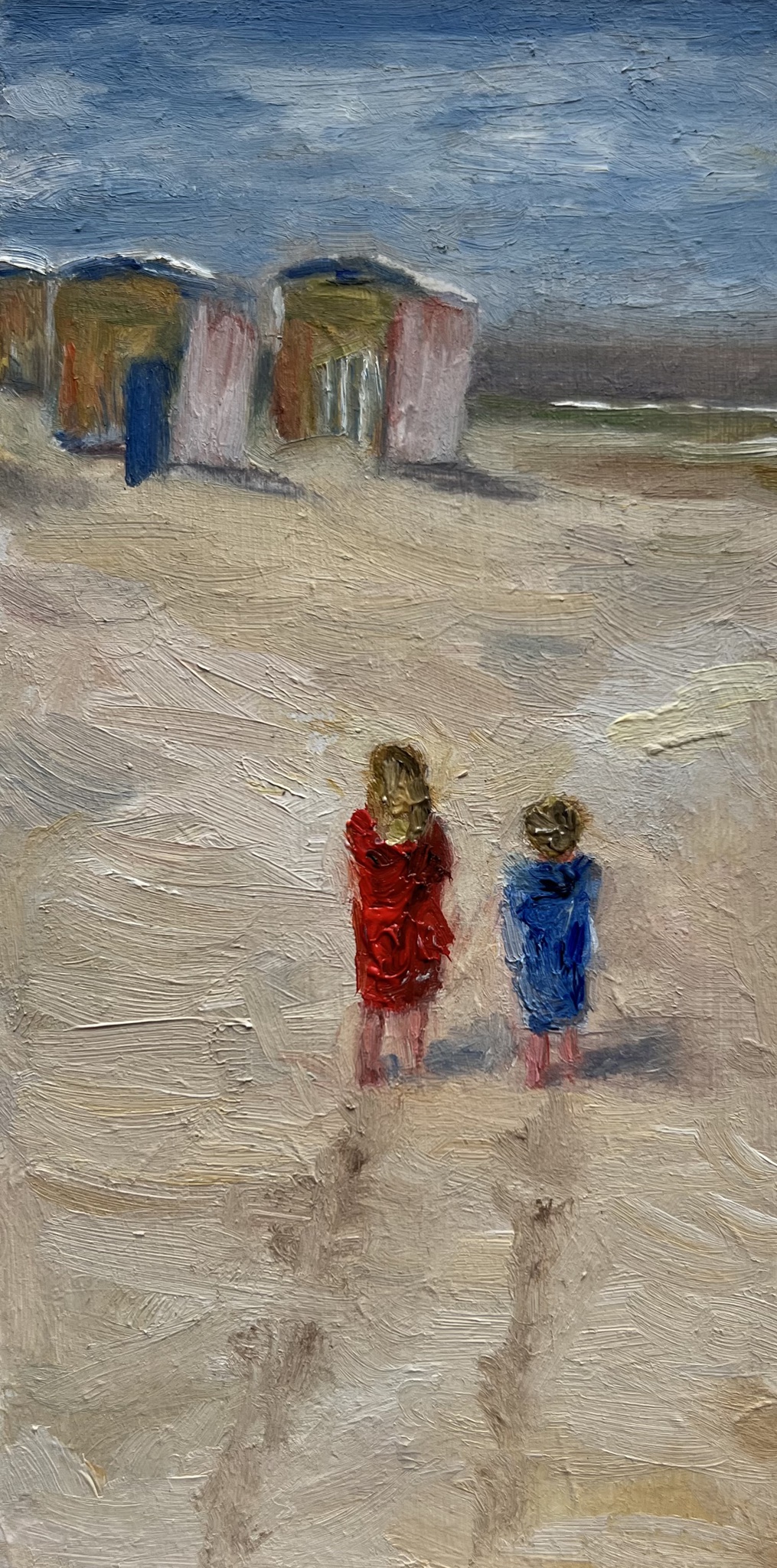 Zee Strand Realistisch Romantisch Kinderen Impressionistisch Badhokjes Minischilderij Petitpeintre