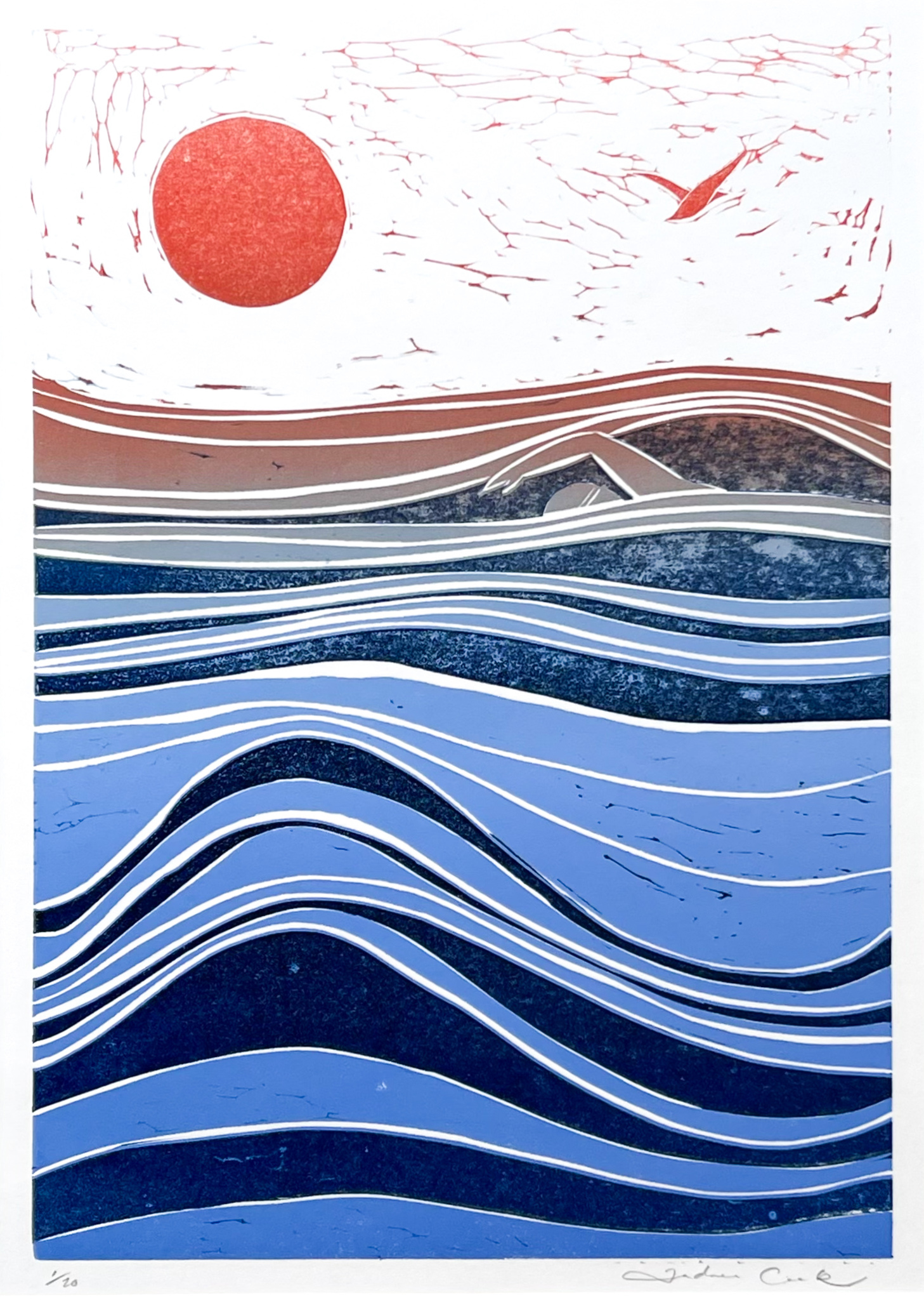 Reductie linoleumsnede met een oplage van 20