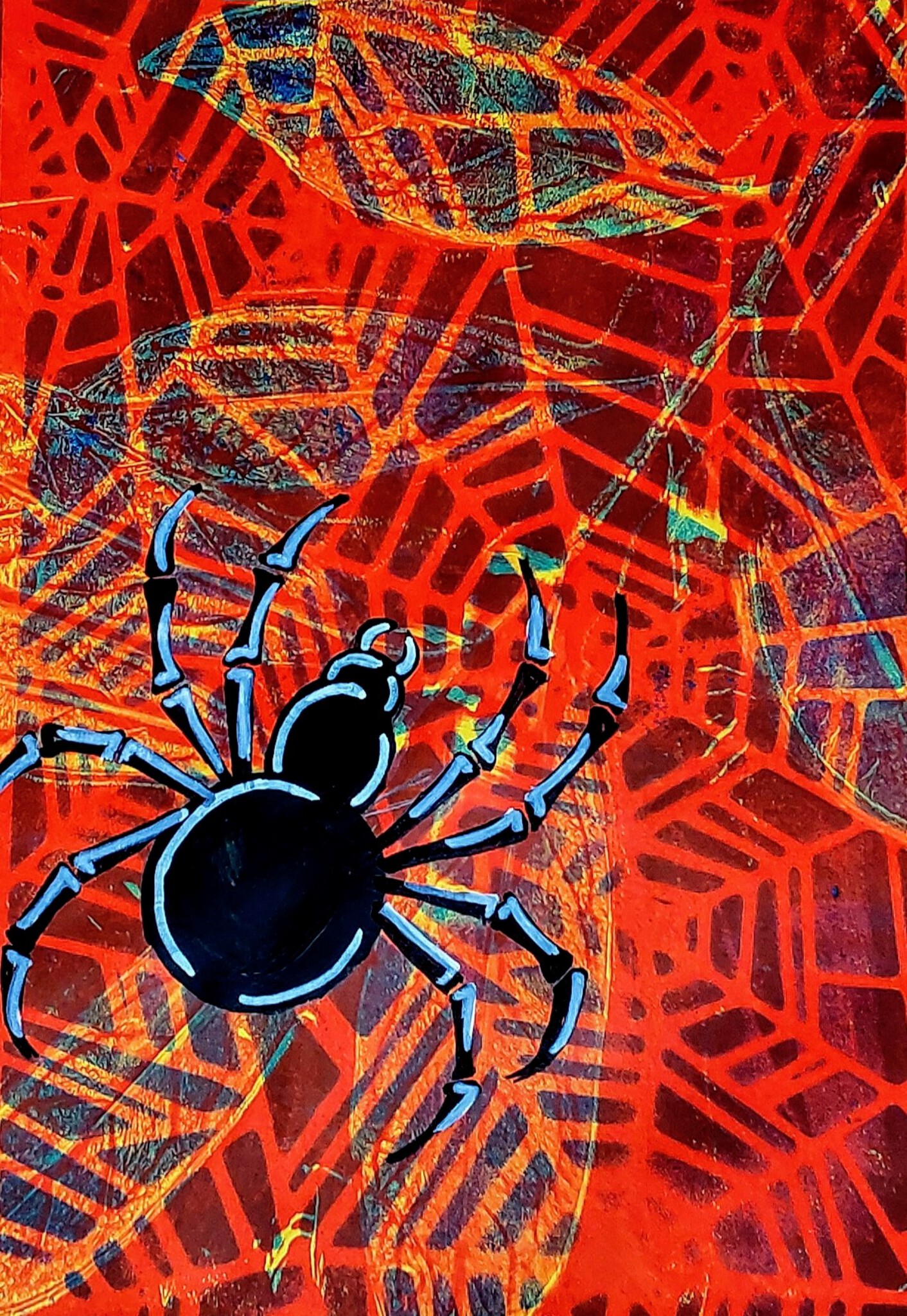 Rood Zwart Acryl Spin Autobiografisch Vliegje Gelliplate