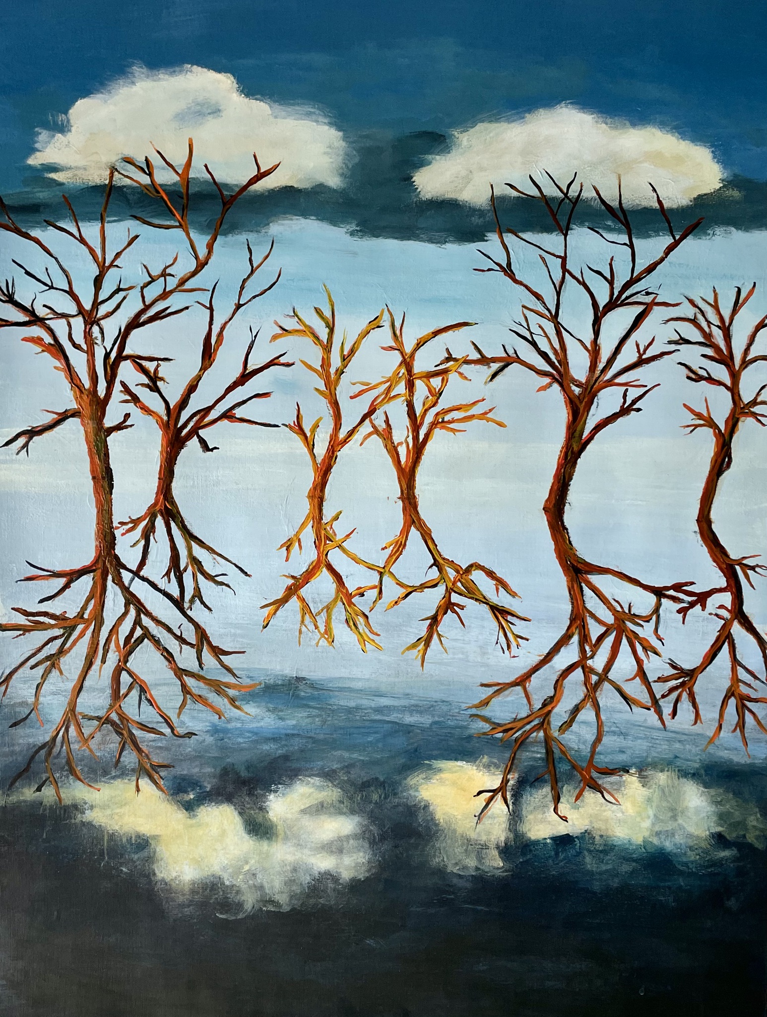 Op onze reis naar Namibië en Botswana kwamen we langs de Sossusvlei. Dit schilderij is daarop geinspireerd. Zo prachtig, bijna buitenaards daar.