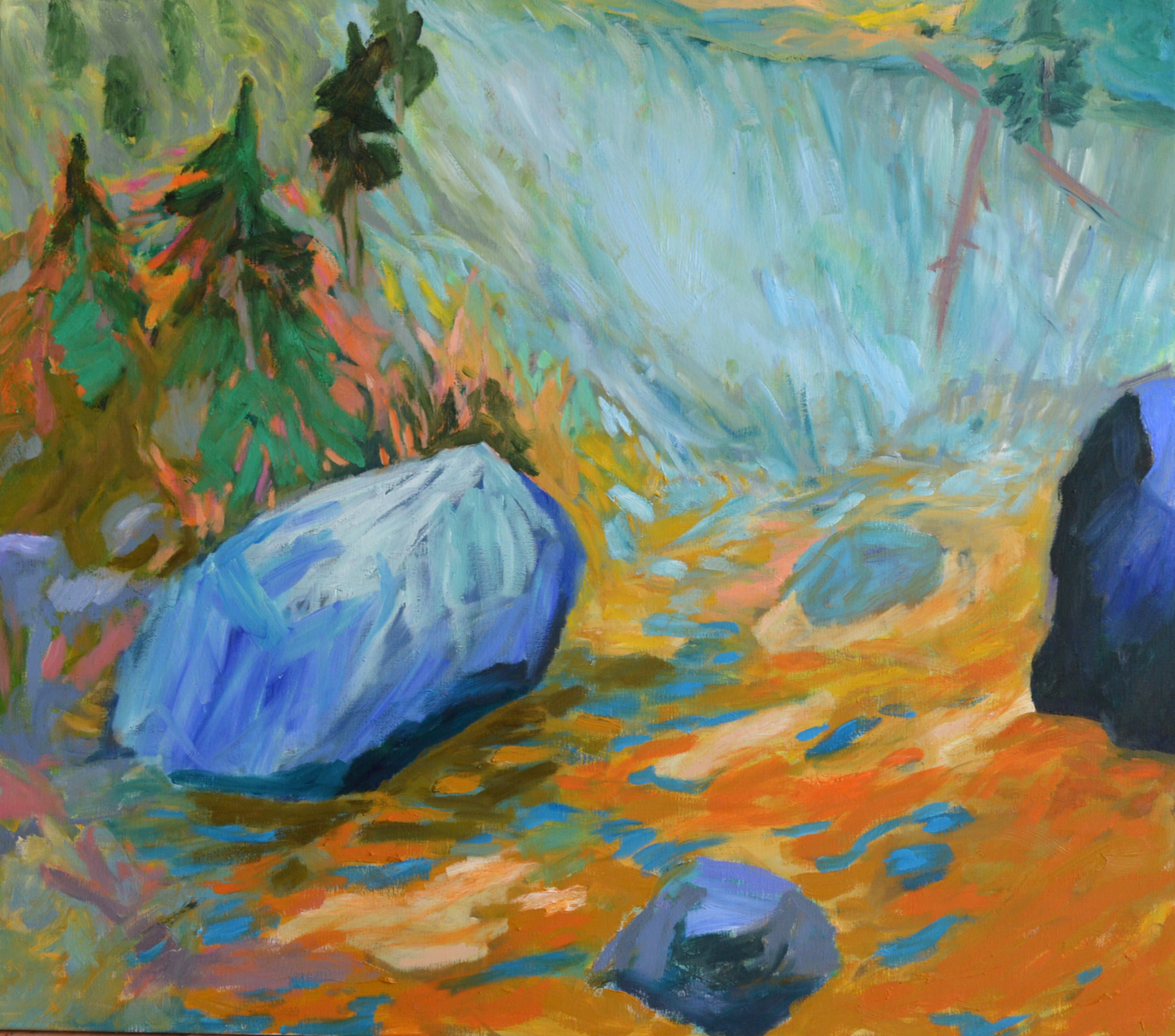 Sophie Bekkering toont in haar schilderijen en keramiek de grootse natuur. Begonnen vanuit wandelingen door de Gelderse bossen is ze inmiddels de bomen nagereisd tot aan en over de boomgrens. De ongerepte alpine ruimte waarin bomen, rotsen en water figureren.is haar speelveld.In haar schilderijen verbeeldt ze de onderliggende krachten van deze stille omgeving door middel van haar expressieve toetsen en levendige kleurcontrasten.