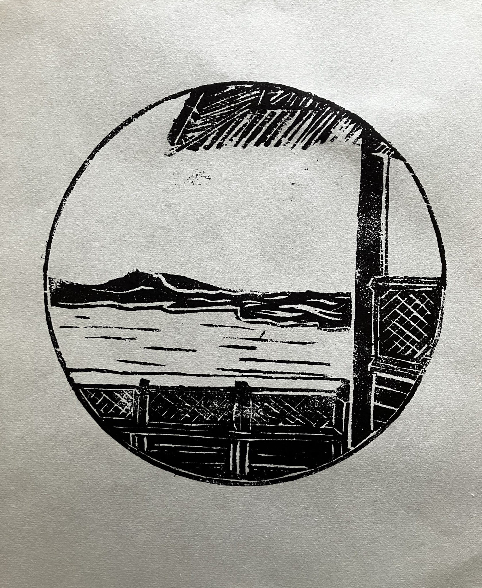 Houtsnede met een Japanse prent als uitgangspunt.