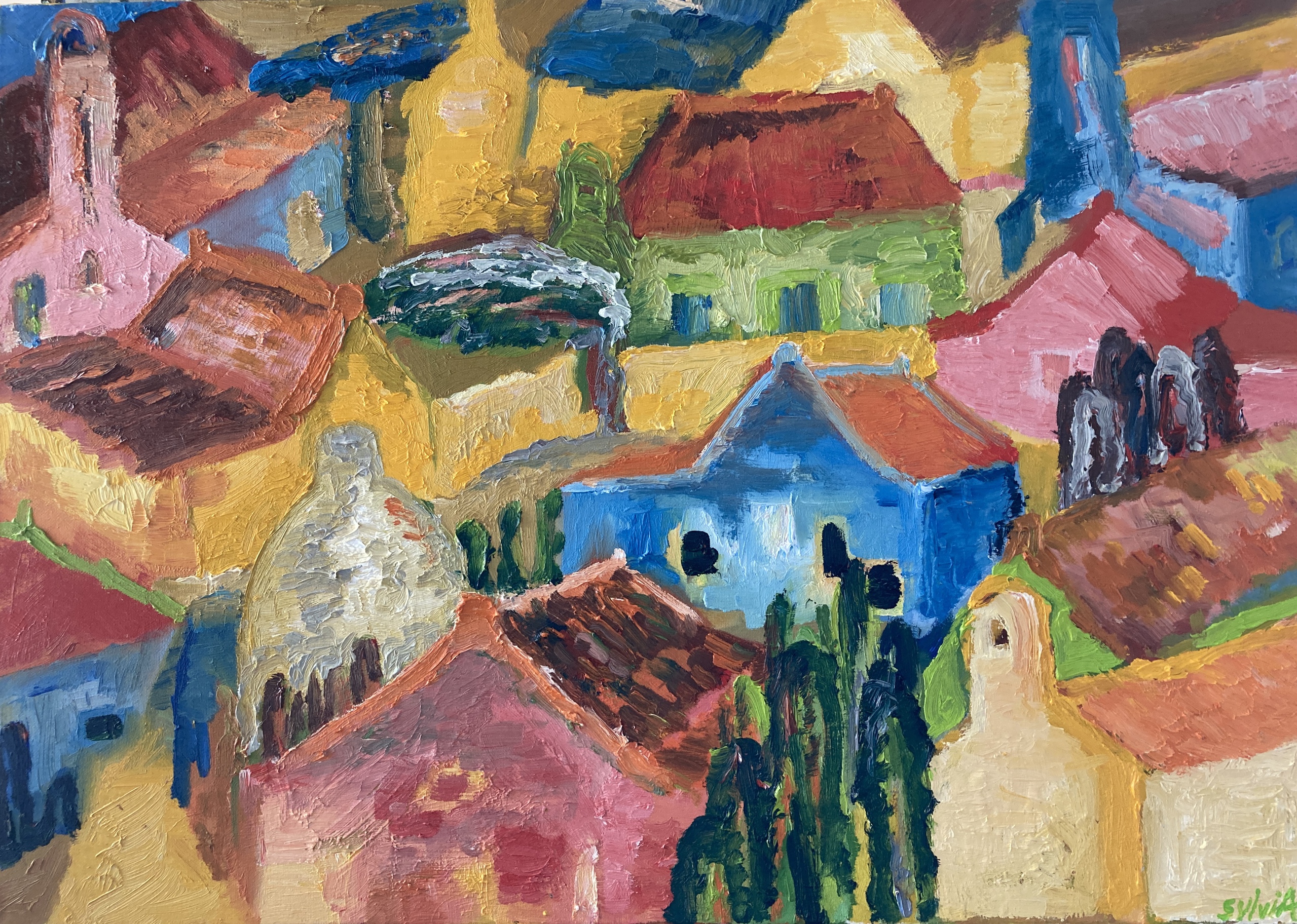 Mijn naam is Sylvia Waterloo. Ik ben geboren in 1961 en ik woon in Amstelveen. Ik schilder en teken en ben afgestudeerd aan de Kunstacademie Haarlem. Mijn recente werk gaat over Corona.