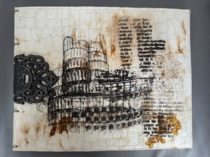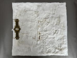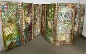 Mijn grootste uitdaging ligt in het vinden van een balans tussen tegenstellingen; zoals de zachte textuur van garens en het pasteuze van verf. Hierbij werk ik in lagen met als doel te zorgen dat de lagen naadloos in elkaar overgaan zodat het een samenhangend geheel wordt. Het is iedere keer weer een verrassing hoe het werk zich opbouwt. Dat maakt dat het me blijft boeien en geeft aanzet tot vele experimenten.