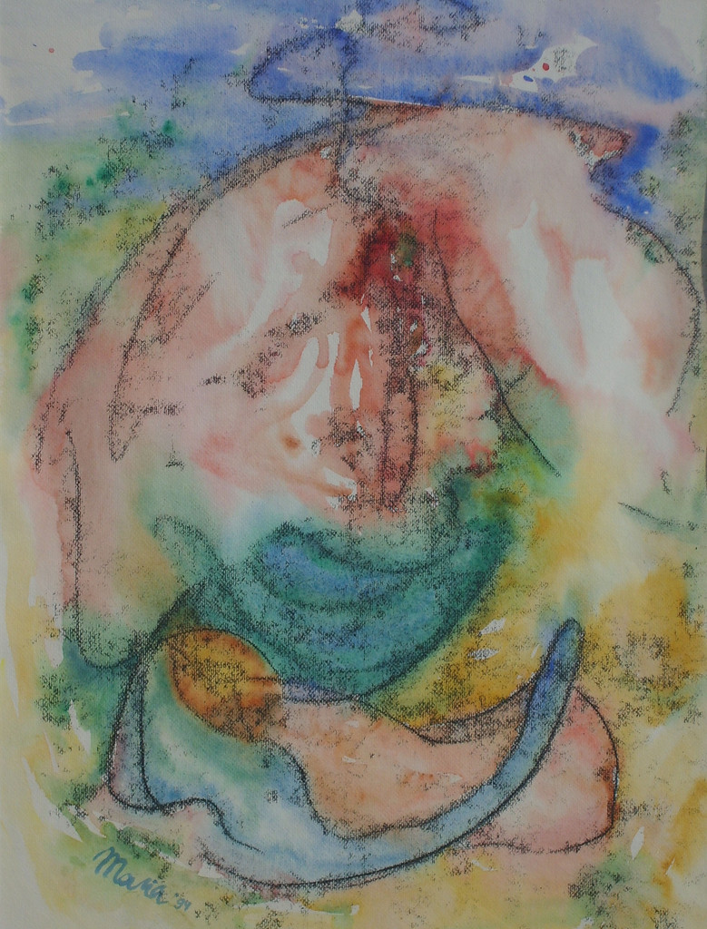 Herinnering Dromen Paradijs Vrouwfiguur Aquareltechniek Monoprint