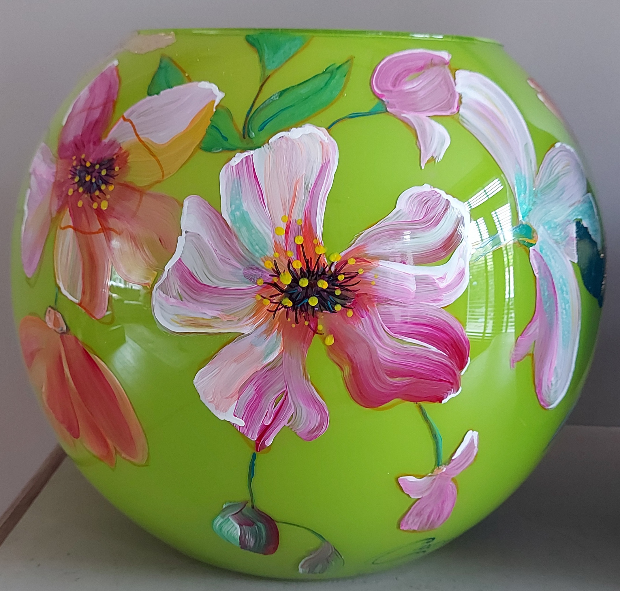 Beschilderde glazen vaas met bloemen