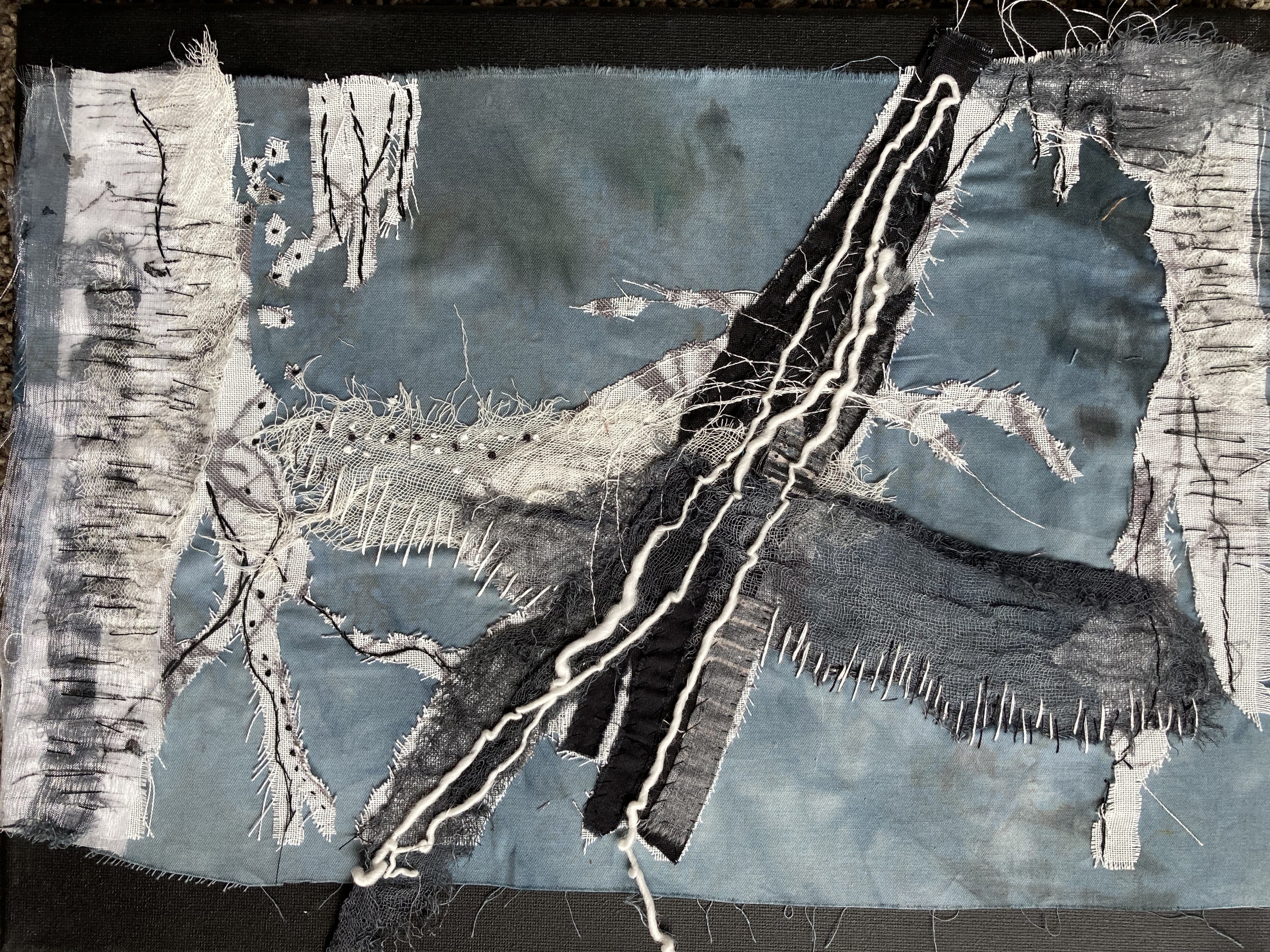 Suze werkt met textiele materialen. Ze werkt in een zeefdruktechniek, en zo maakt ze een abstracte weergave van een thema, gedicht en of intuitief.