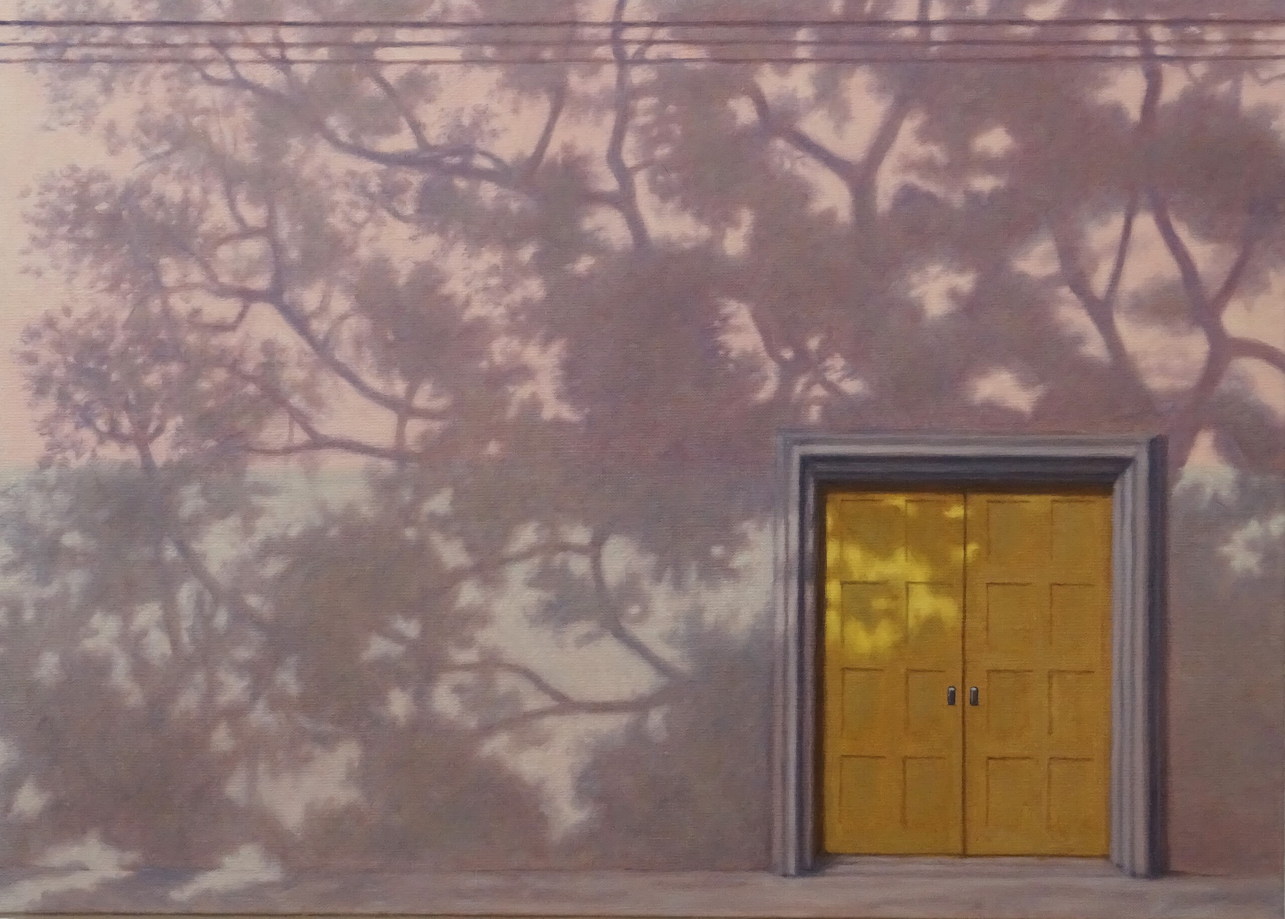 Geel Boom Deur Muur Neorealisme Schaduwvlekken