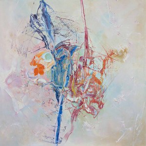 Abstract kunstwerk in olieverf op linnen doek, heldere kleuren, dynamische textuur