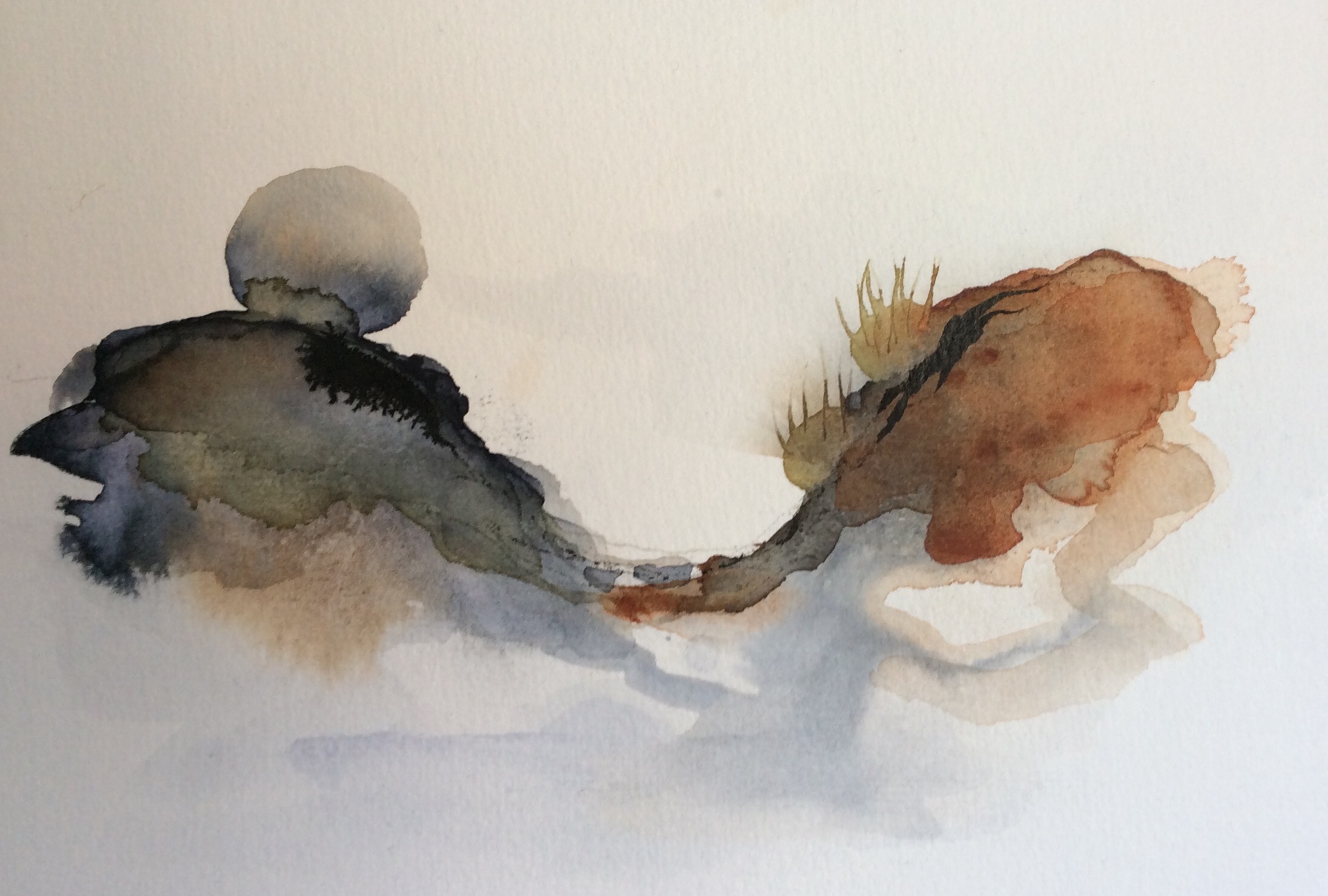 Vormen in aquarel werkend vanuit mijn fantasie en geïnspireerd door de natuur, kleuren en bewegingen om mij heen.