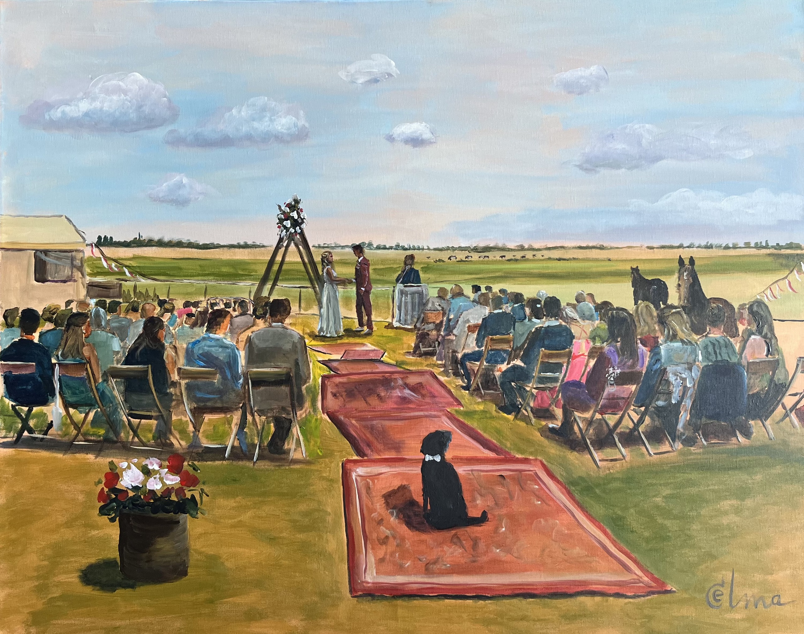 Ceremonie Livepaint Cadeau Hond Paarden Wei Achtertuin Bruidspaar