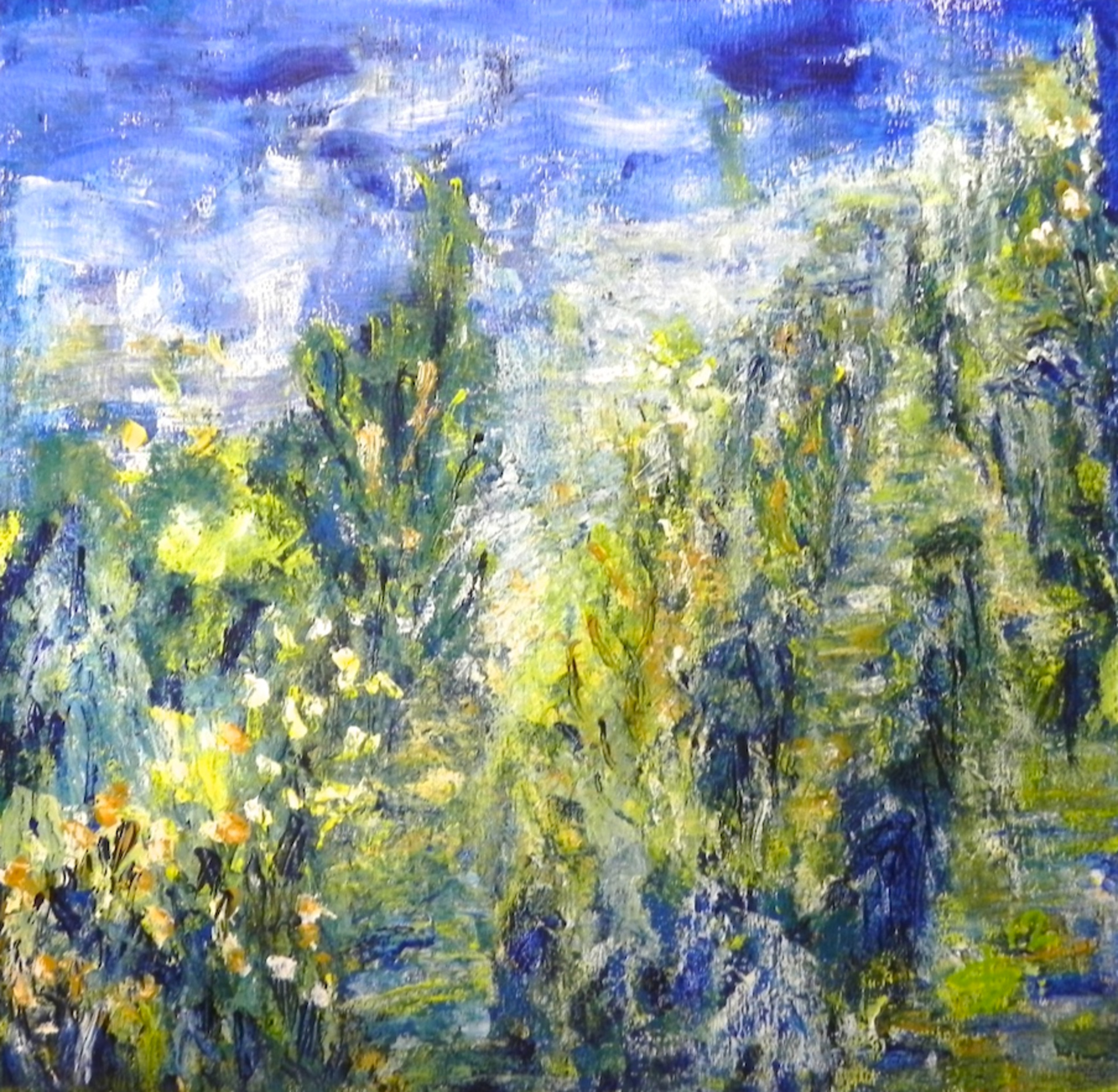 Abstract Geel Landschap Blauw Oker Groen Bergen Acrylverf Nacht Spanje Impressionisme Bossen Expressionisme Mediterraan Feeëriek
