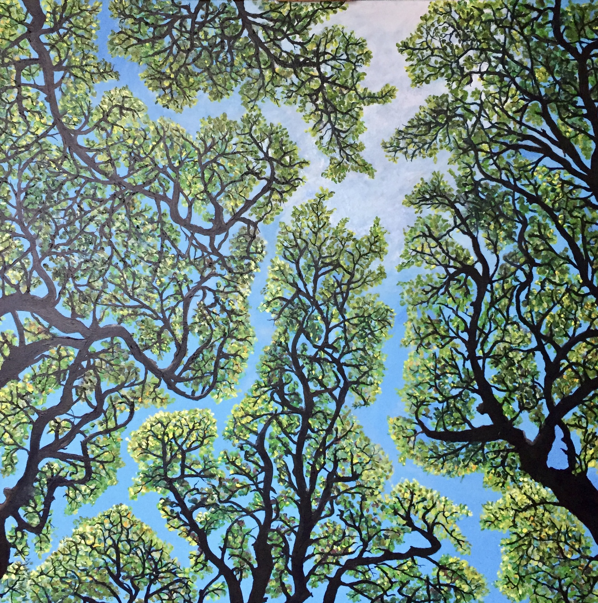 Blauw Acryl Groen Doek Bladeren Bomen Lucht
