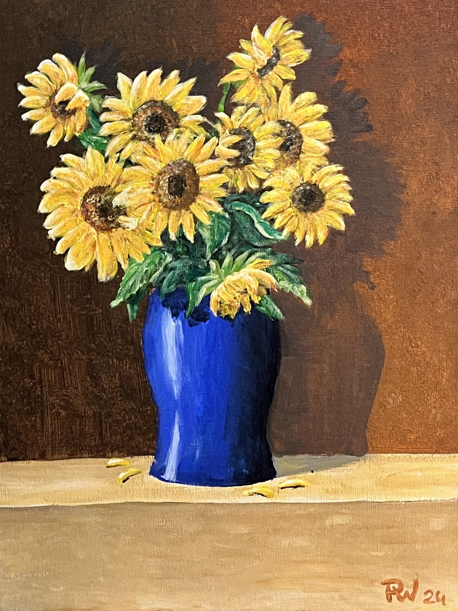 Door een hoge dwarslaesie in 2019 zit ik, sterk beperkt in handen en benen , in een elektrische rolstoel en begonnen met schilderen als oefening en heb er nu veel afleiding en plezier in gekregen.