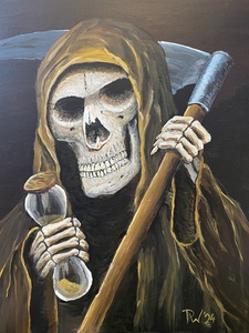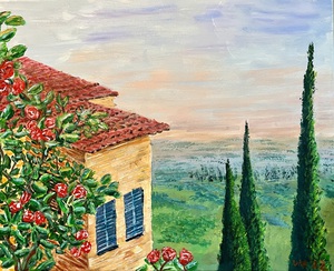 Door een hoge dwarslaesie in 2019 zit ik, sterk beperkt in handen en benen , in een elektrische rolstoel en begonnen met schilderen als oefening en heb er nu veel afleiding en plezier in gekregen.