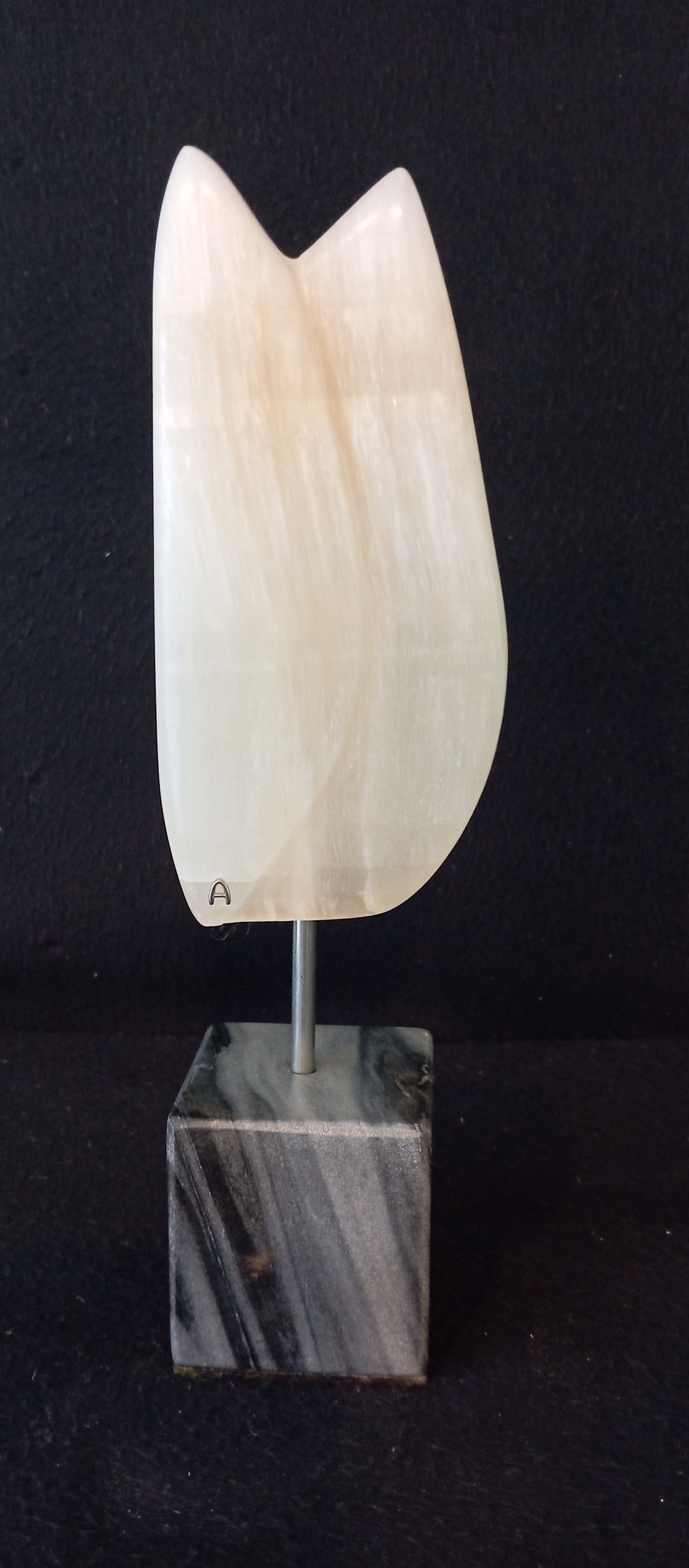Tulp gemaakt van Seleniet op marmeren sokkel