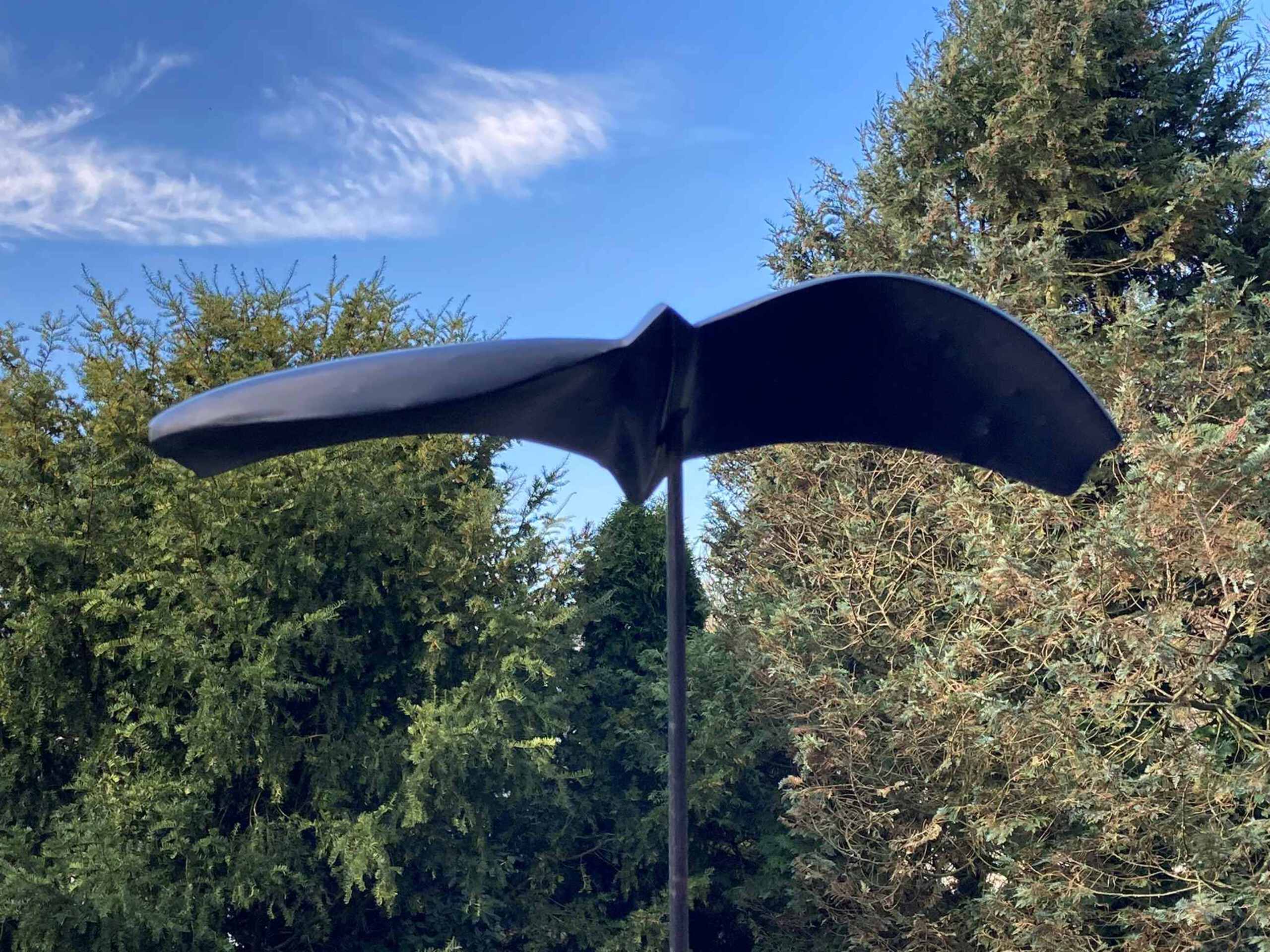 Vlucht is gemaakt van springstone. Het is een cadeau voor een 45-jarig huwelijks jubileum. Het is geplaatst op een hoge pin in een tuin zodat het boven de beplanting uitkomt.