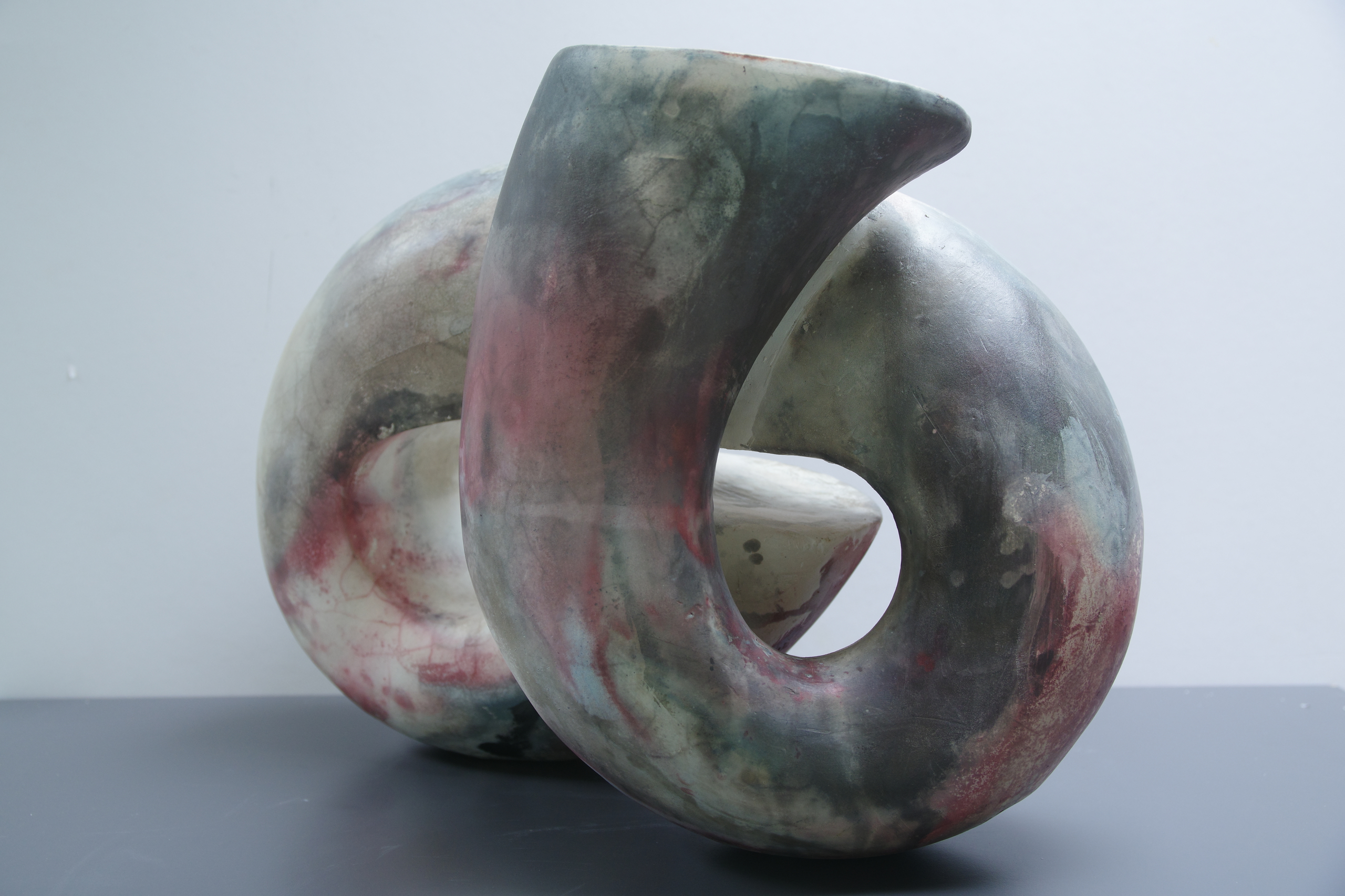 Mijn keramiek is rond, gebogen, zacht en geleidelijk verlopend met verrassende details van laagsgewijs opgebouwde onderdelen die juist speciale aandacht krijgen. Ik laat me uitdagen door het zogenaamde primitieve stoken; pitfire en naked raku.