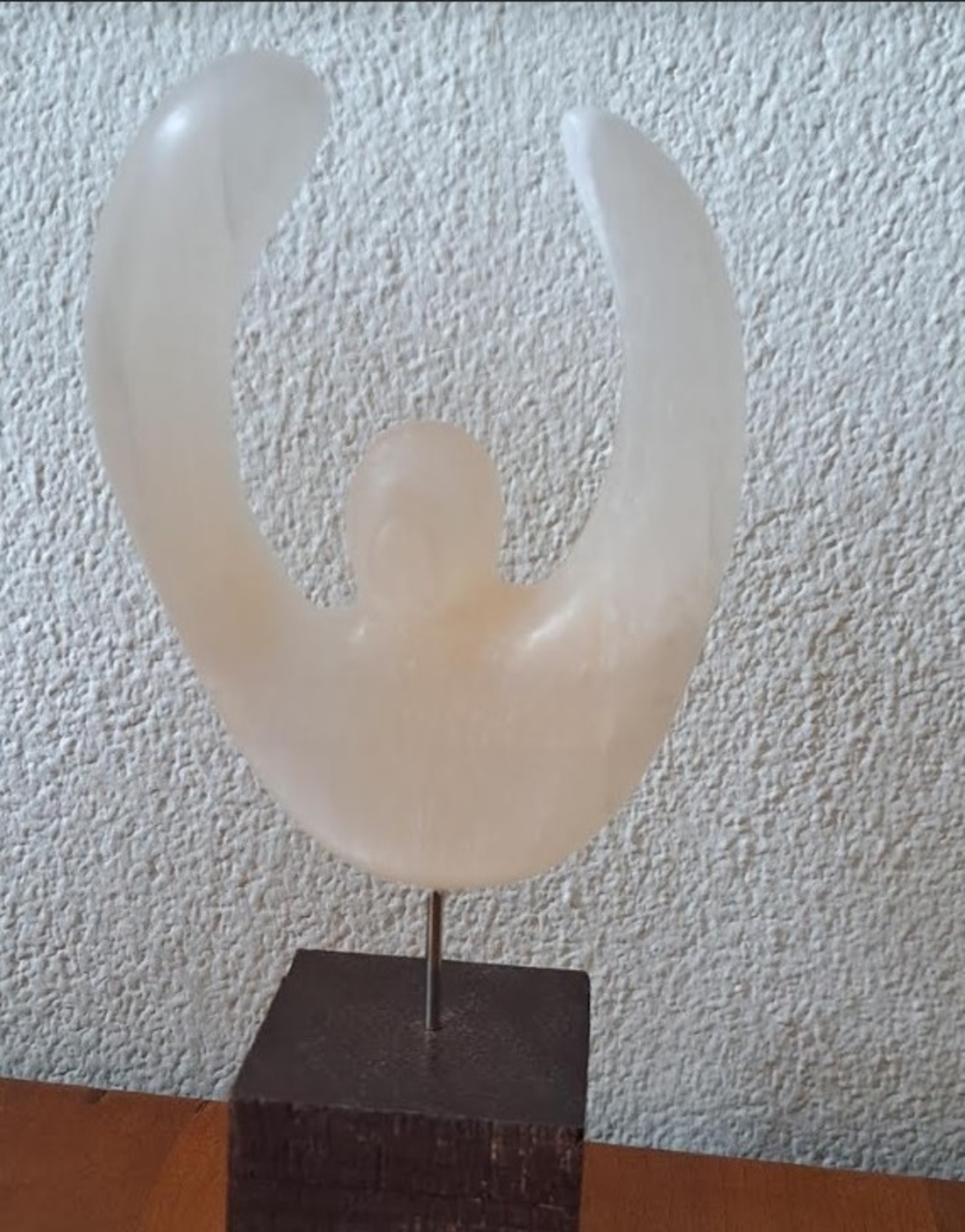 Dit is een gezinsbeeldje van wit-oranje seleniet. Ik heb het eindeloos geschuurd t/m 2000, prachtig als er licht doorheen valt.