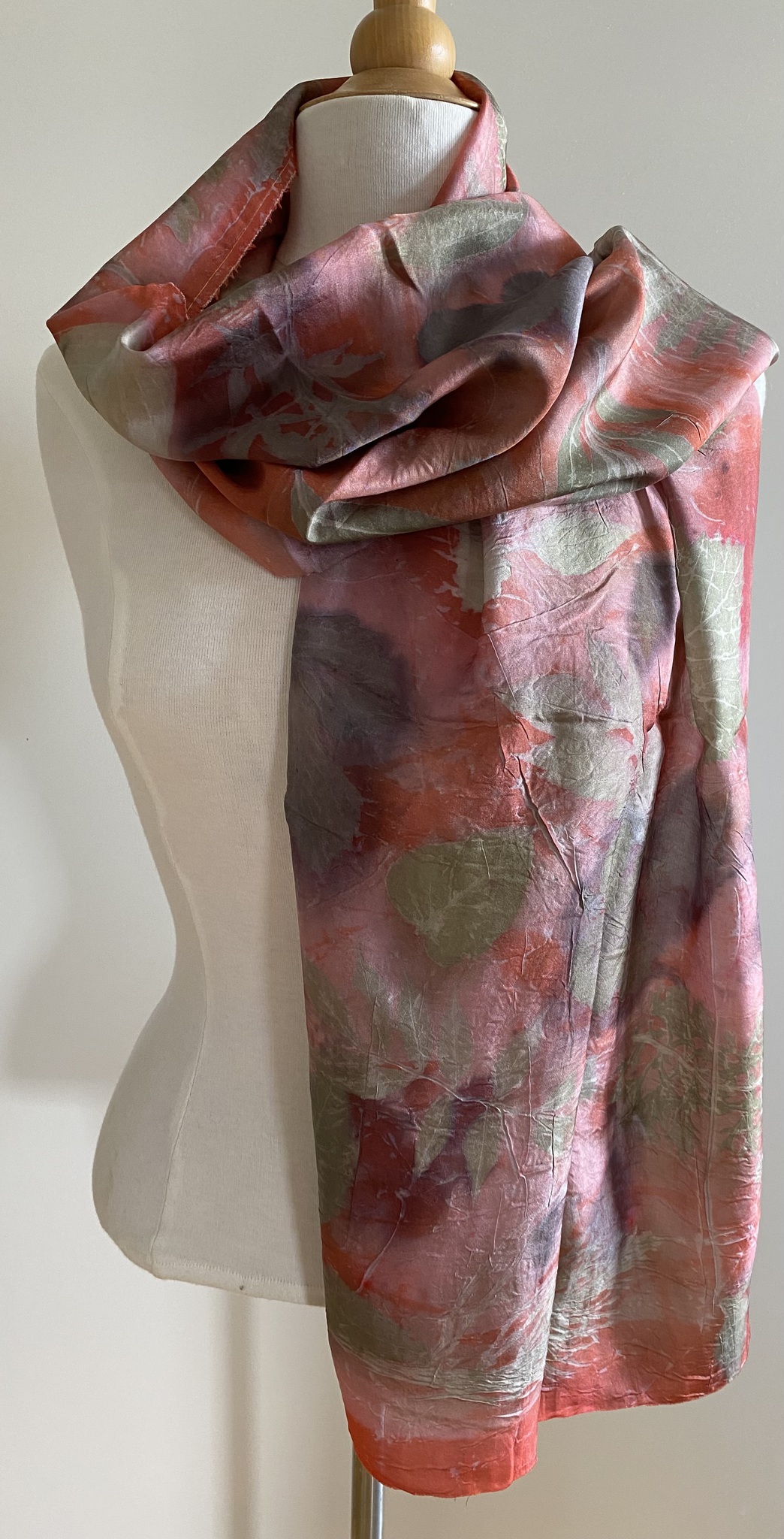 Habotai is een andere zijde dan hier over het algemeen gebruikelijk is. Hij is wat dikker. Ik heb een rozerode verfdeken gebruikt. De sjaal glanst en heeft een chique uitstraling.
