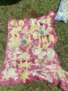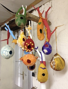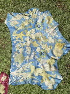 Altijd bezig geweest met textiele vormen. Uiteindelijk heb ik een viltopleiding gevolgd. Vilten doe ik in de winter. Echter, zodra het weer het toelaat ben ik aan het ecoprinten.