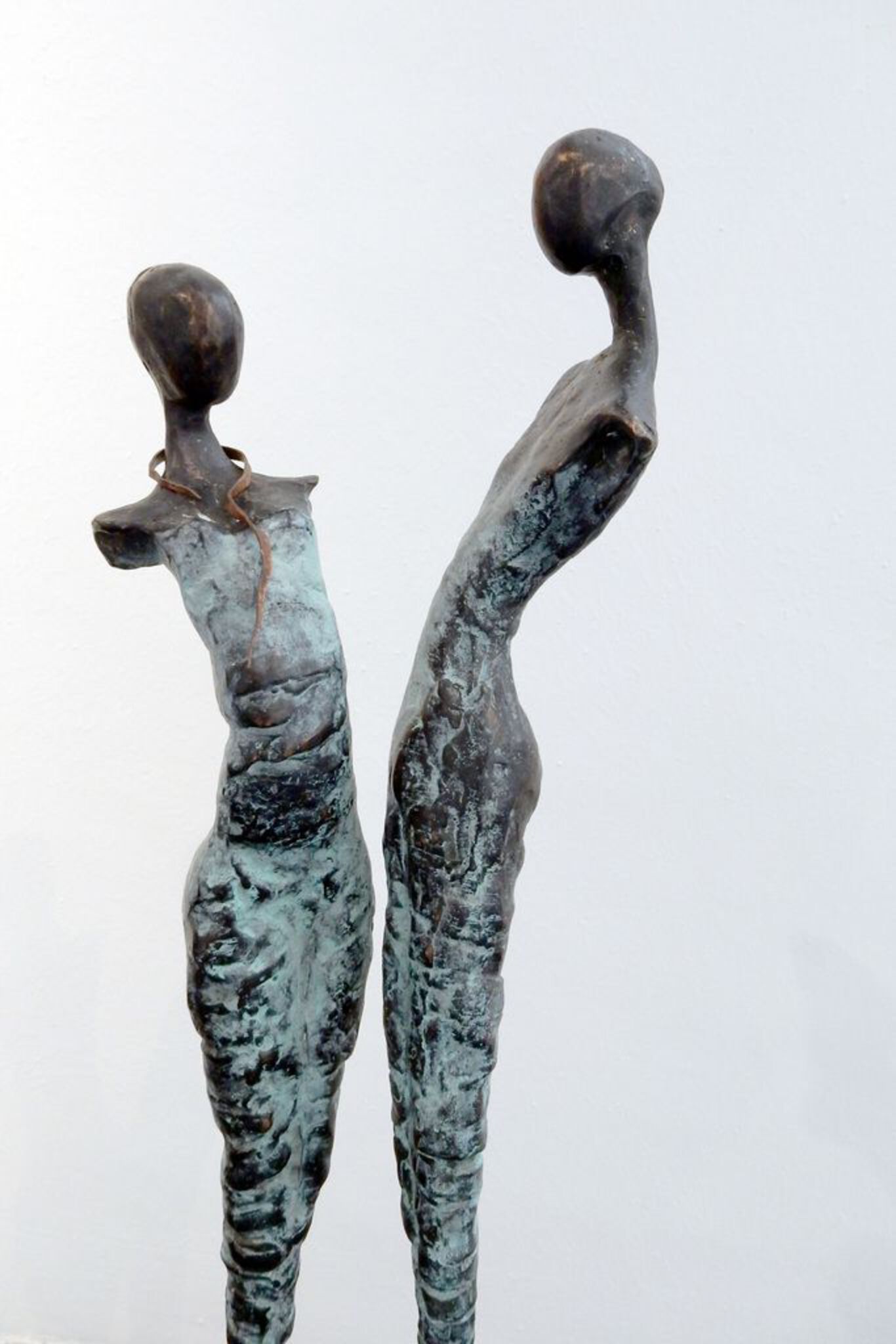 De bronzen beelden van Loes Knoben (1956) laten expressie, beweging en spanning zien. Loes' werk weerspiegelt haar kijk op het leven en toont haar talent om mensen te doorgronden. Deze sterk ontwikkelde intuïtie is terug te vinden in haar beelden. In haar werk zijn natuurlijke materialen het uitgangspunt. Altijd is ze op zoek naar hout, takken en schors, verweerd door weer en wind. Hierin zoekt ze naar kracht, ritme en evenwicht. Van hieruit vertrekkend ontstaan als een ontdekkingstocht haar beelden. U bent van harte welkom om mijn beelden te komen bekijken. Telefoonnummer: 06-23644892. Lid van BOK (Beroeps Organisatie Kunstenaars)