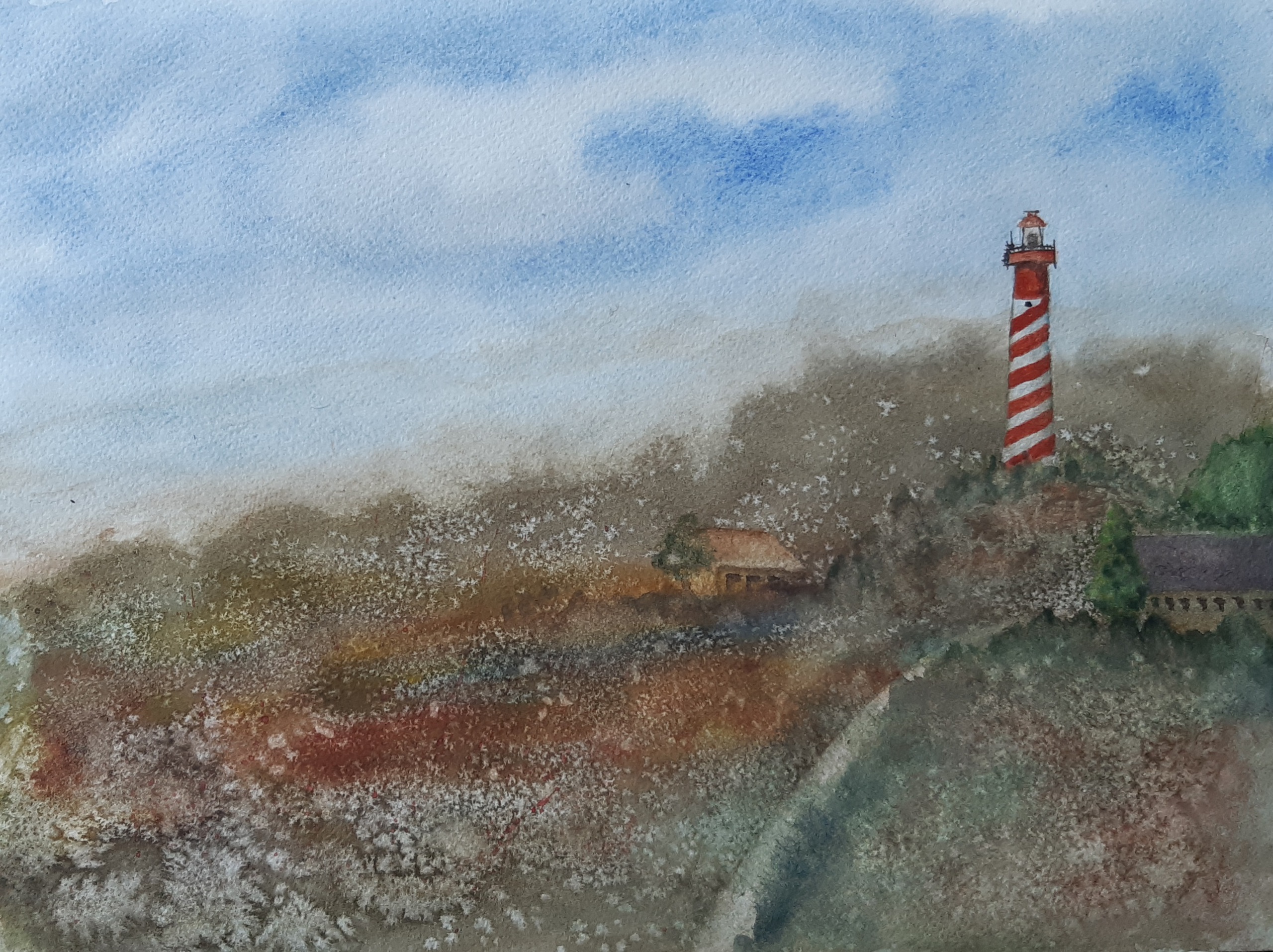 Geabstraheerde aquarel naar foto Vuurtoren Burgh Hasmstede