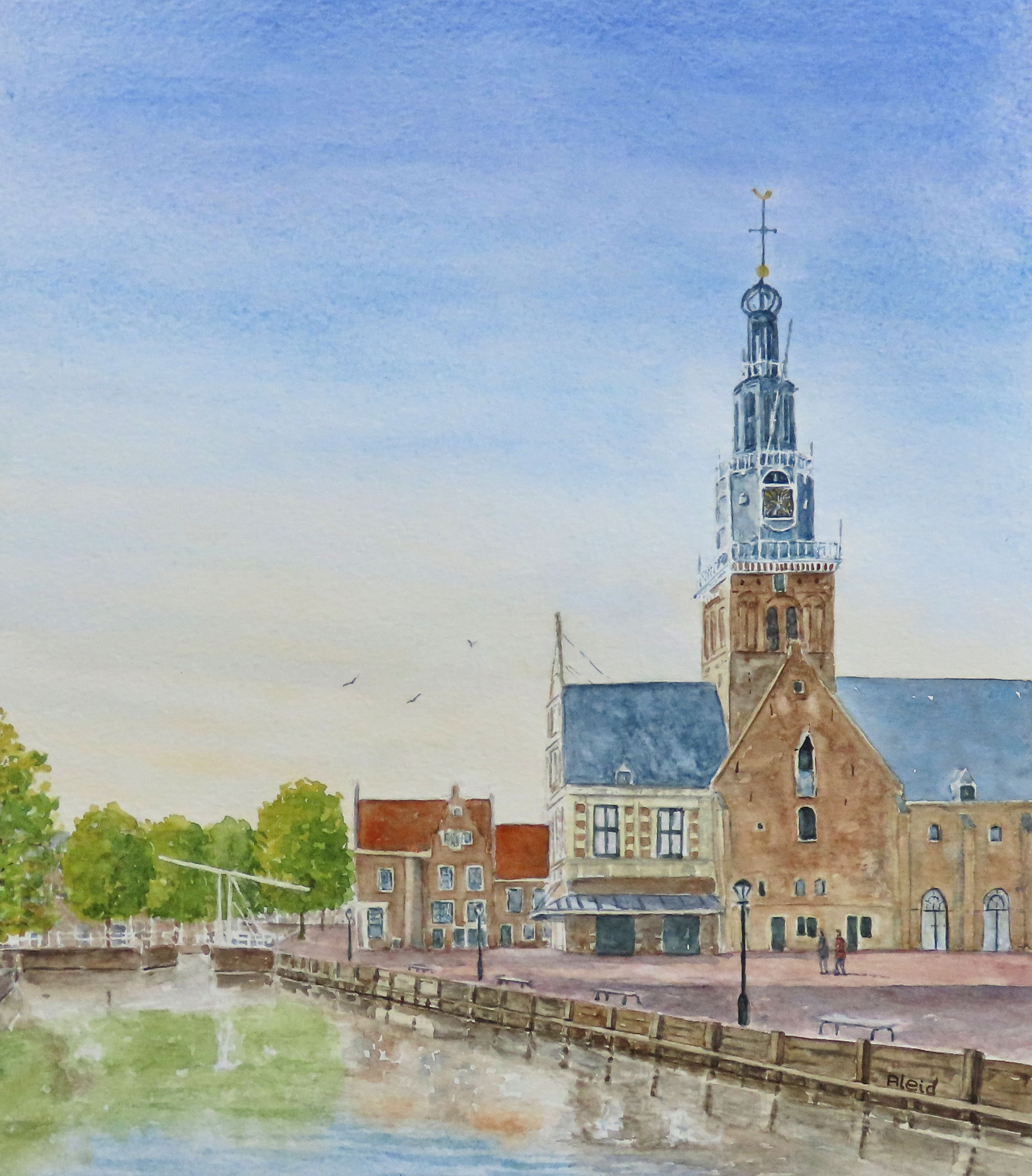 Aquarel Holland Stadsgezicht Noord Alkmaar Waagplein