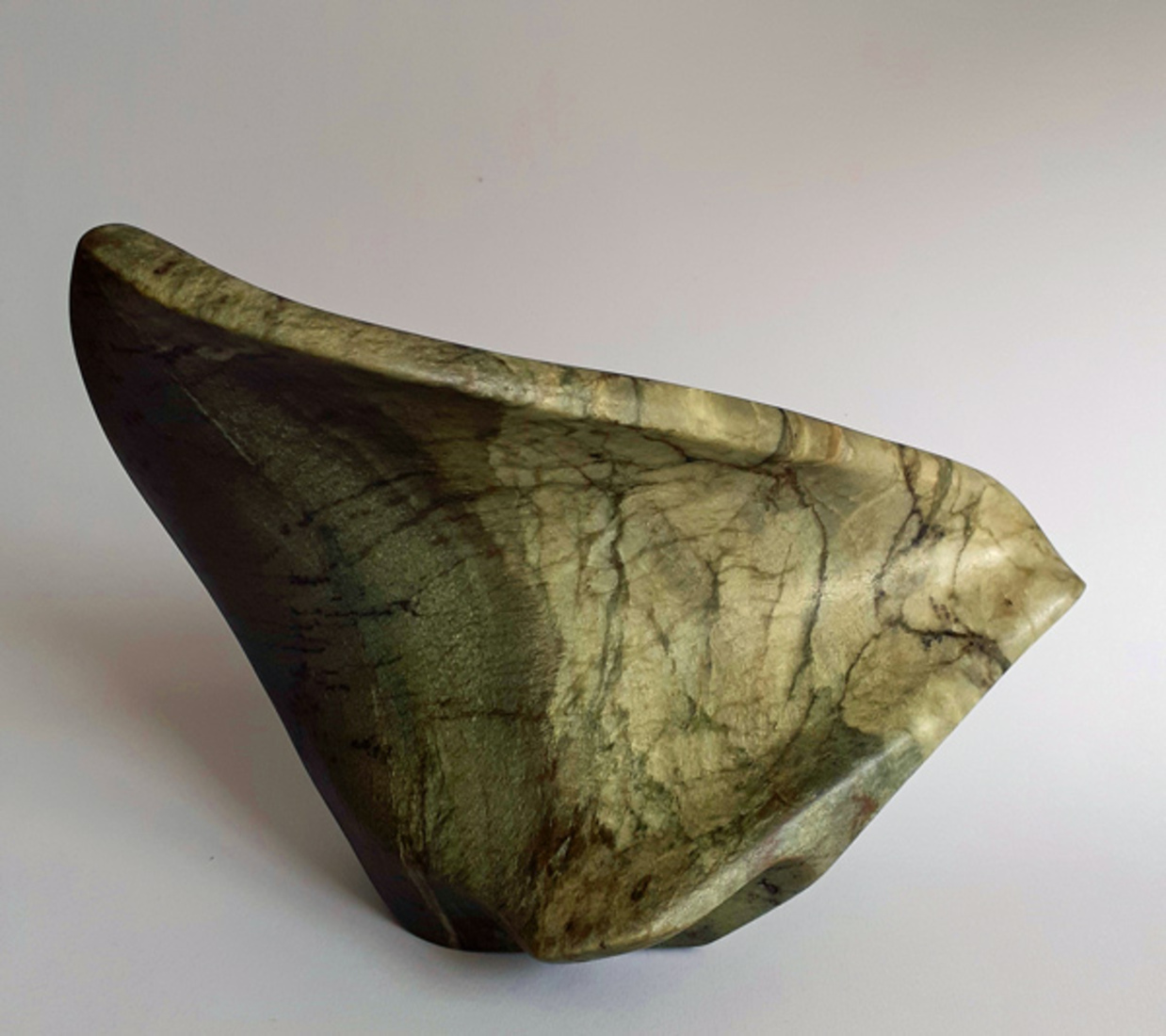 Golf, bevroren in steen. Uitgevoerd in groen geaderd speksteen uit India.
