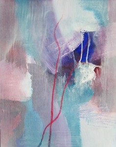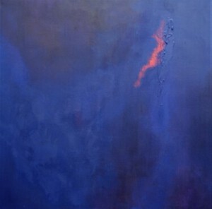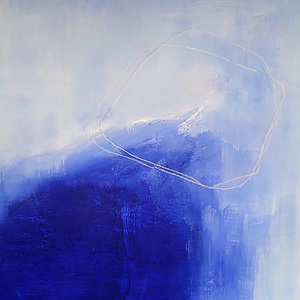 De kunstwerken genaamd 'Solo's' zijn ontstaan vanuit Van Riels fascinatie voor eenvoud. Complexe vraagstukken zijn vaak terug te brengen tot eenvoud. Haar onderzoek naar vereenvoudiging resulteert in minimalistisch werk.Zij schildert rust en eenvoud. Ik schilder tijdens de zomer van 2024 erg graag met deze kleur blauw. Het schilderij omvat veel lagen en nuances blauw en paars.