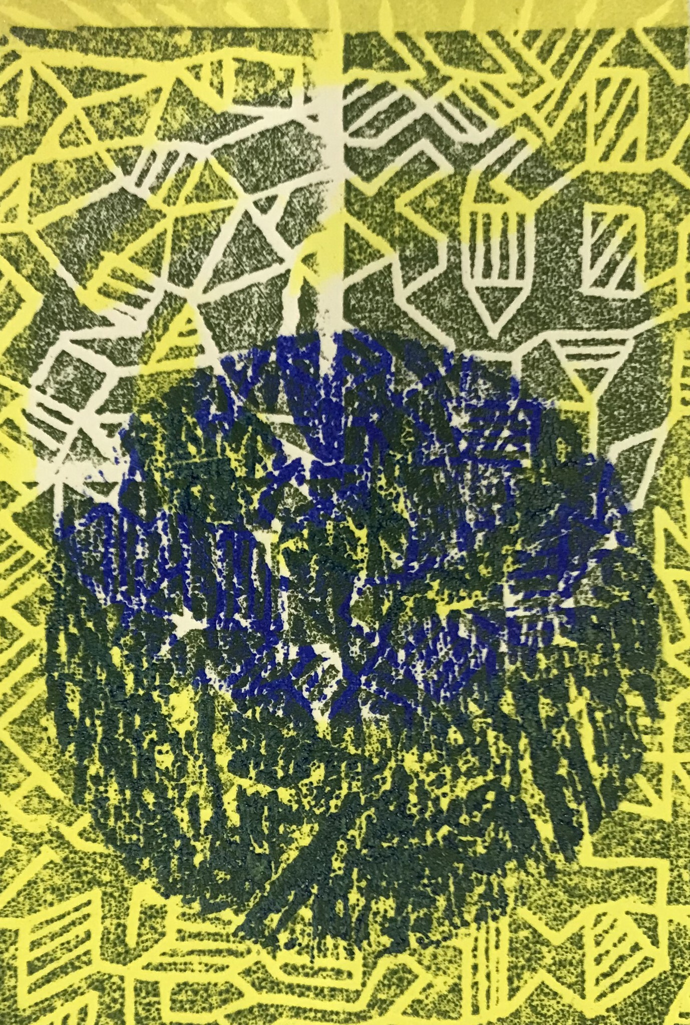 De prent van Josée Wuyts voor het Internationaal print mail art project georganiseerd door Stichting Grafein, er zijn 220 deelnemers.