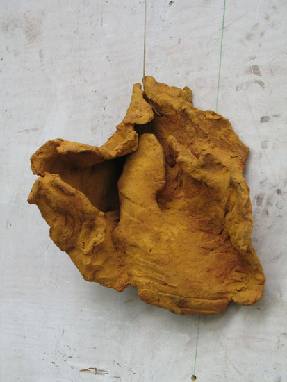 Carien Engelhard (1949)drukt zich uit in tekeningen en sculpturen en op het grensvlak tussen deze twee. Momenteel maakt zij papiersnedes: dat zijn tekeningen waar ruimten in gesneden zijn en die op een afstandje van de muur hangen zodat het licht door de tekening heen op de achterwand schaduwen kan vormen. Geïnspireerd op vormen uit de natuur als verdroogde bladeren, wortels of stenen maakt zij van verschillende materialen vormen die -aan de wand hangend -de ruimte in komen.