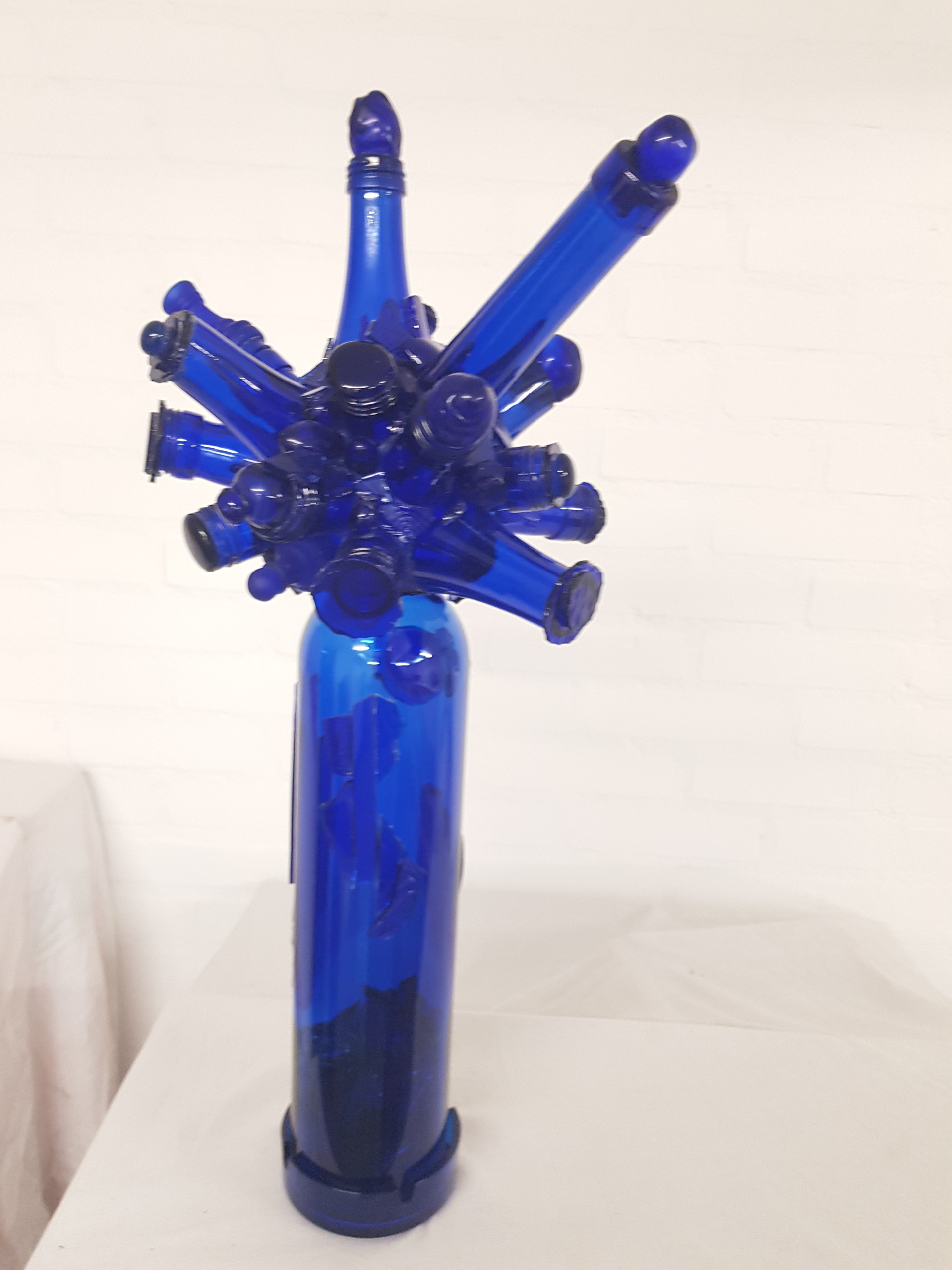 Knotwilgen hebben mij altijd gefascineerd. De overlevingskracht, na elke snoei groeit hij steeds opnieuw uit en wordt gaandeweg steeds interessanter. Met deze blauwe knotwilg wil ik uitdrukking geven aan de worsteling van de natuur die nu onder druk staat. De natuur heeft momenteel "the blues" het gaat immers niet goed. Tijd voor aandacht en inzet van ons allemaal.